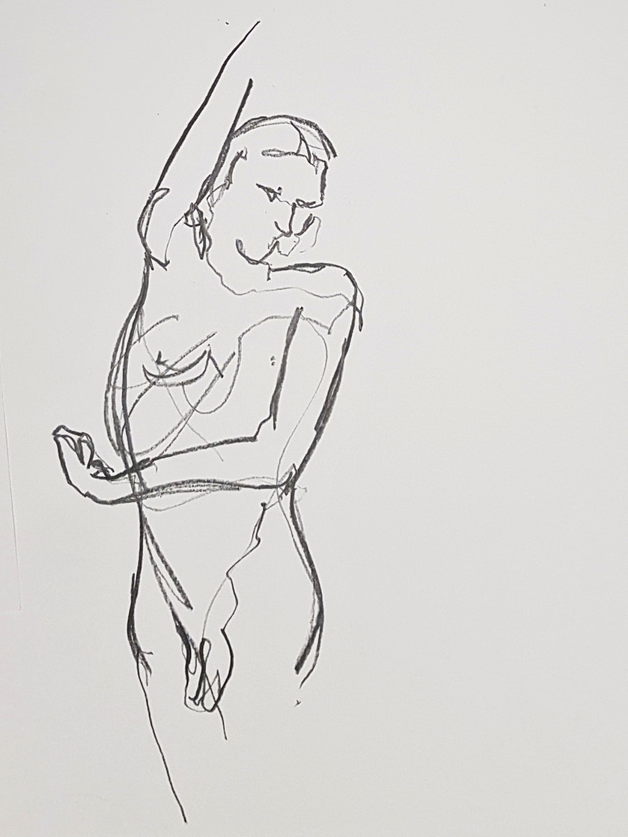 What may have been a baptism of fire for life drawing newcomers actually resulted in laudable works. I kept my poses relatively uncomplicated. The challenge was already arduous without me making it even more knotty. It’s important to read the room.