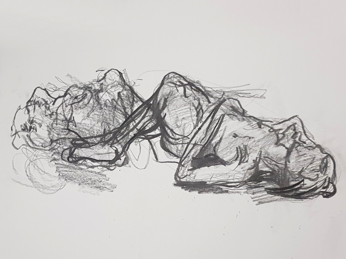 What may have been a baptism of fire for life drawing newcomers actually resulted in laudable works. I kept my poses relatively uncomplicated. The challenge was already arduous without me making it even more knotty. It’s important to read the room.