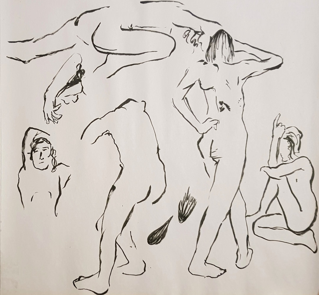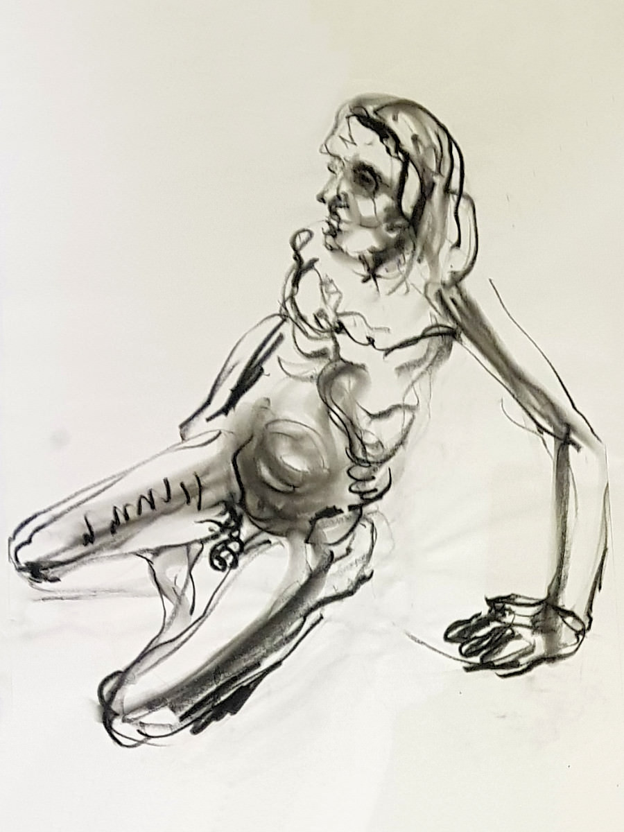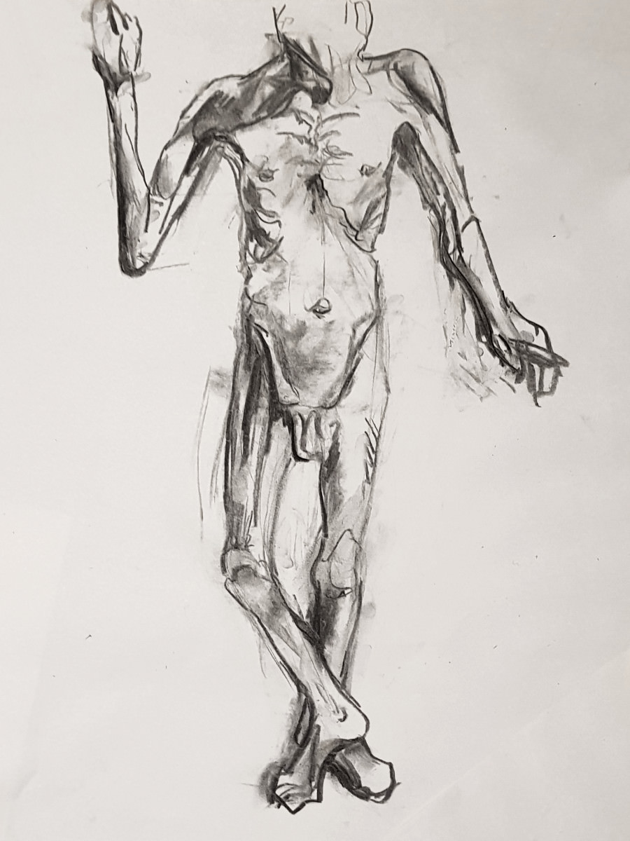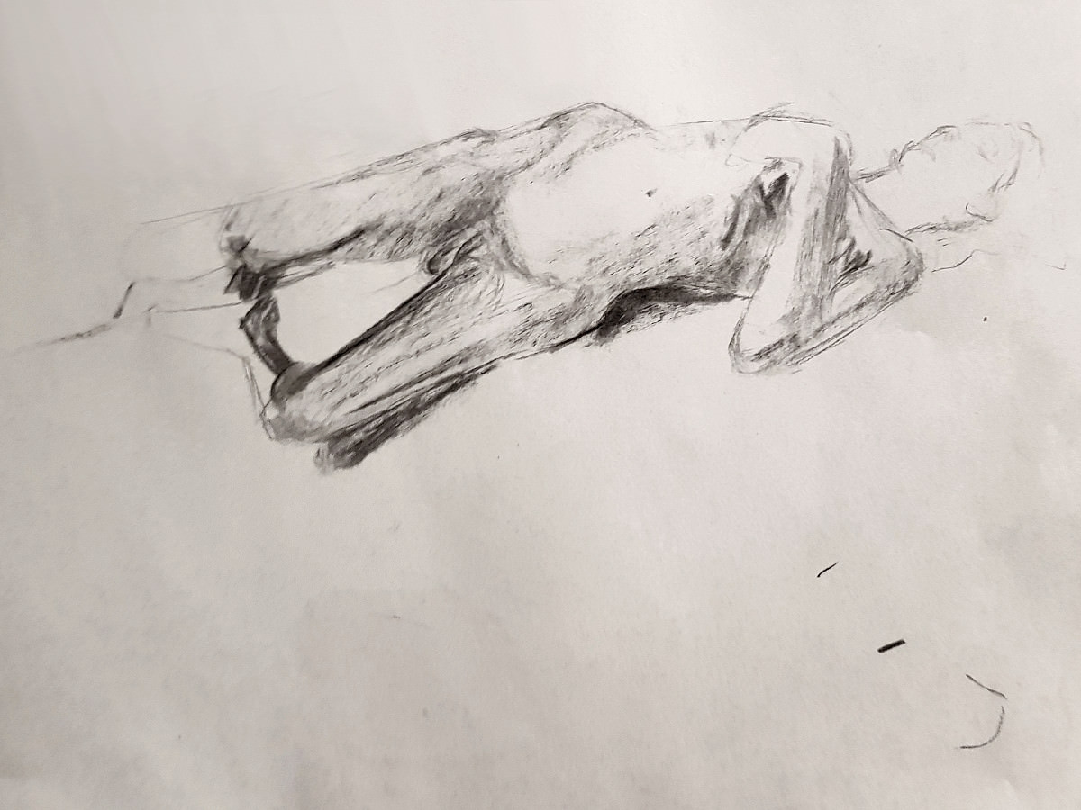 As a model in these situations the key is to plan poses well in advance. I knew all the likely pose lengths for the whole session before I started, so mentally I planned how I would alternate between standing, sitting and reclining, constantly changing direction in the round, such that I could best avoid two successive ‘cold’ poses.