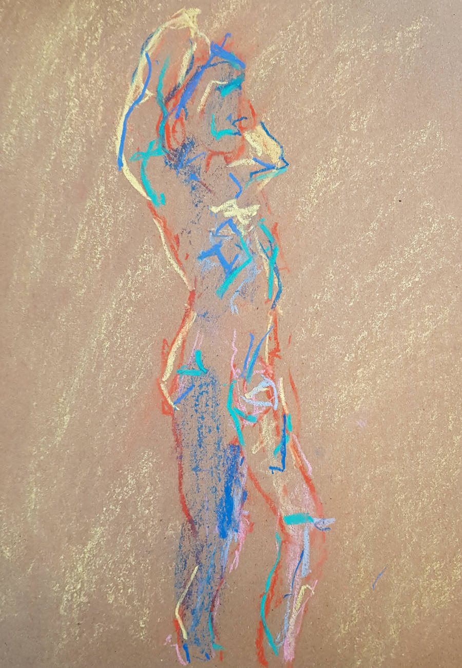 After tea, biscuits and a nice mingle at break-time, we finished with a 35-minute pose that took us to 2pm. I made it a standing pose, which was appreciated as I was given to understand most models sit or lay down at this stage. I figured there would be time for sitting in the long-pose session due next. This had been an excellent opener.