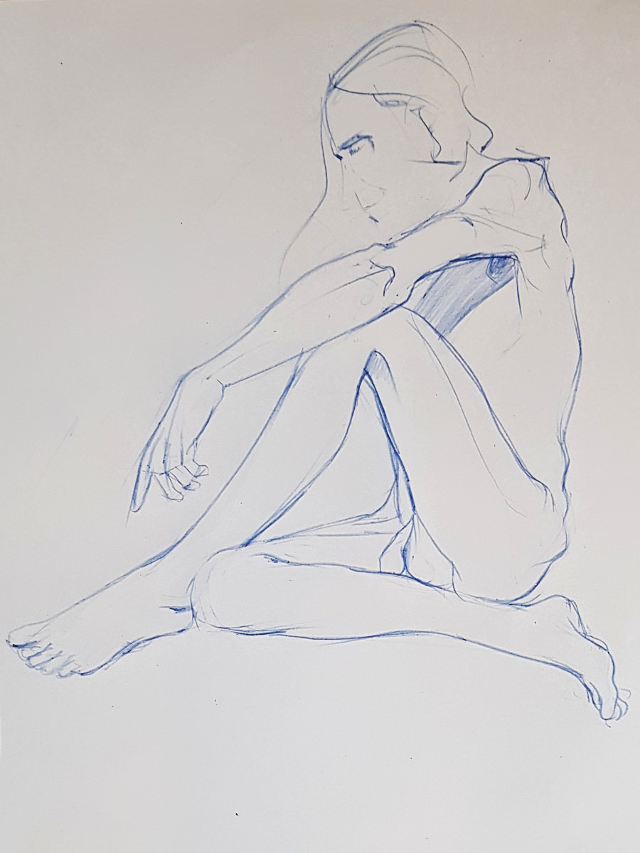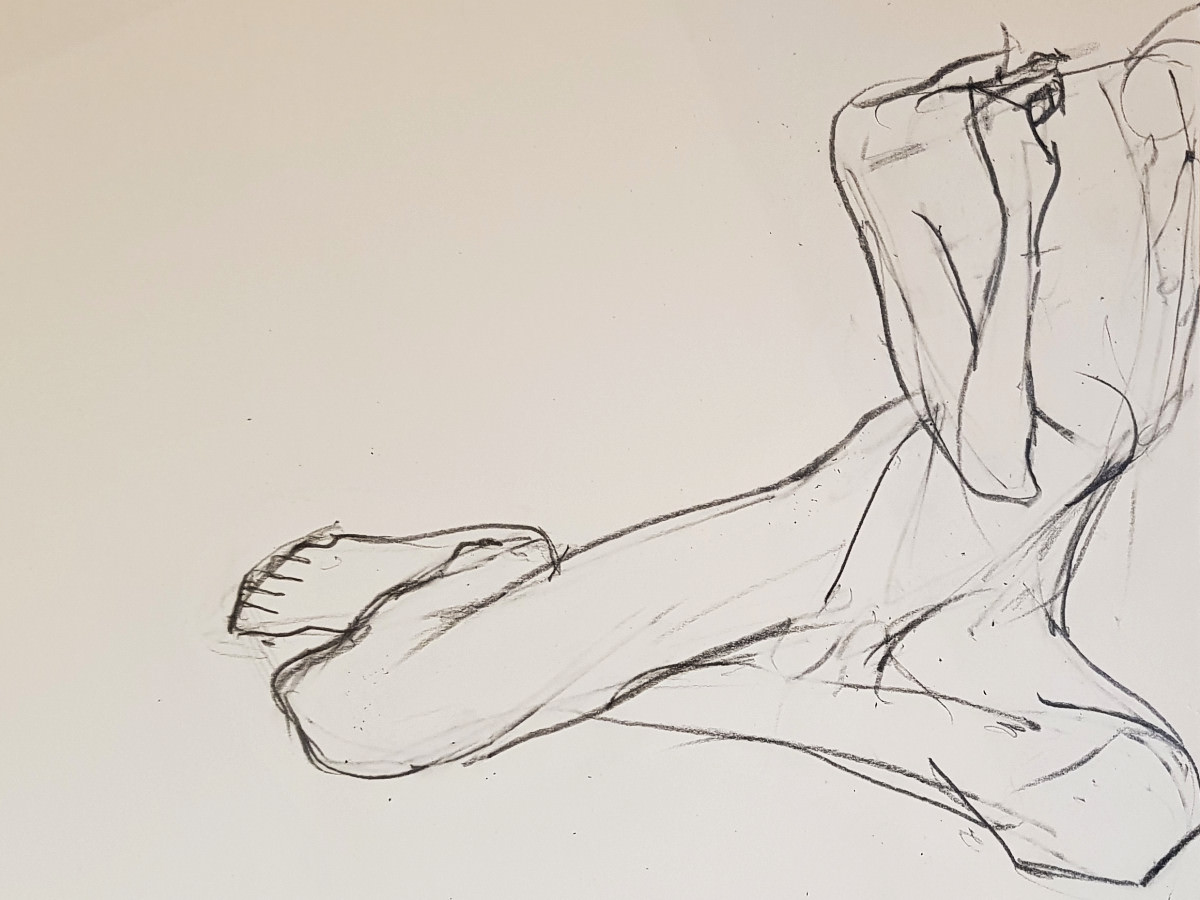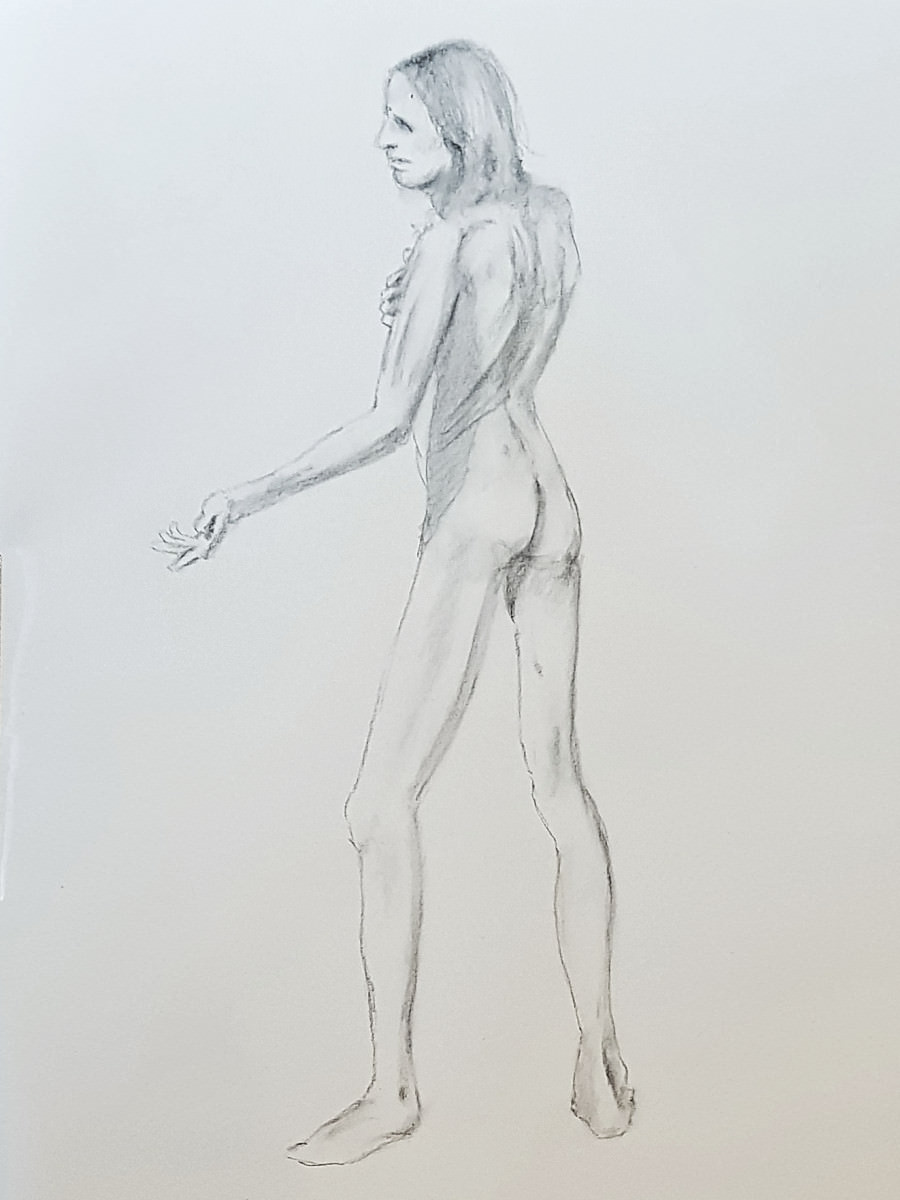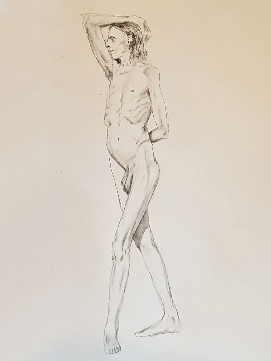 It’s always a joy to pose for Leytonstone Life Drawing; for the space, the music, the lighting, the pose lengths, the relaxed vibe, and especially for organiser Jennifer Wolf. Jenny has a natural warm-heartedness and infectious enthusiasm for art-making that in turn makes me conscious of wanting to do better myself. It’s a positive feeling.