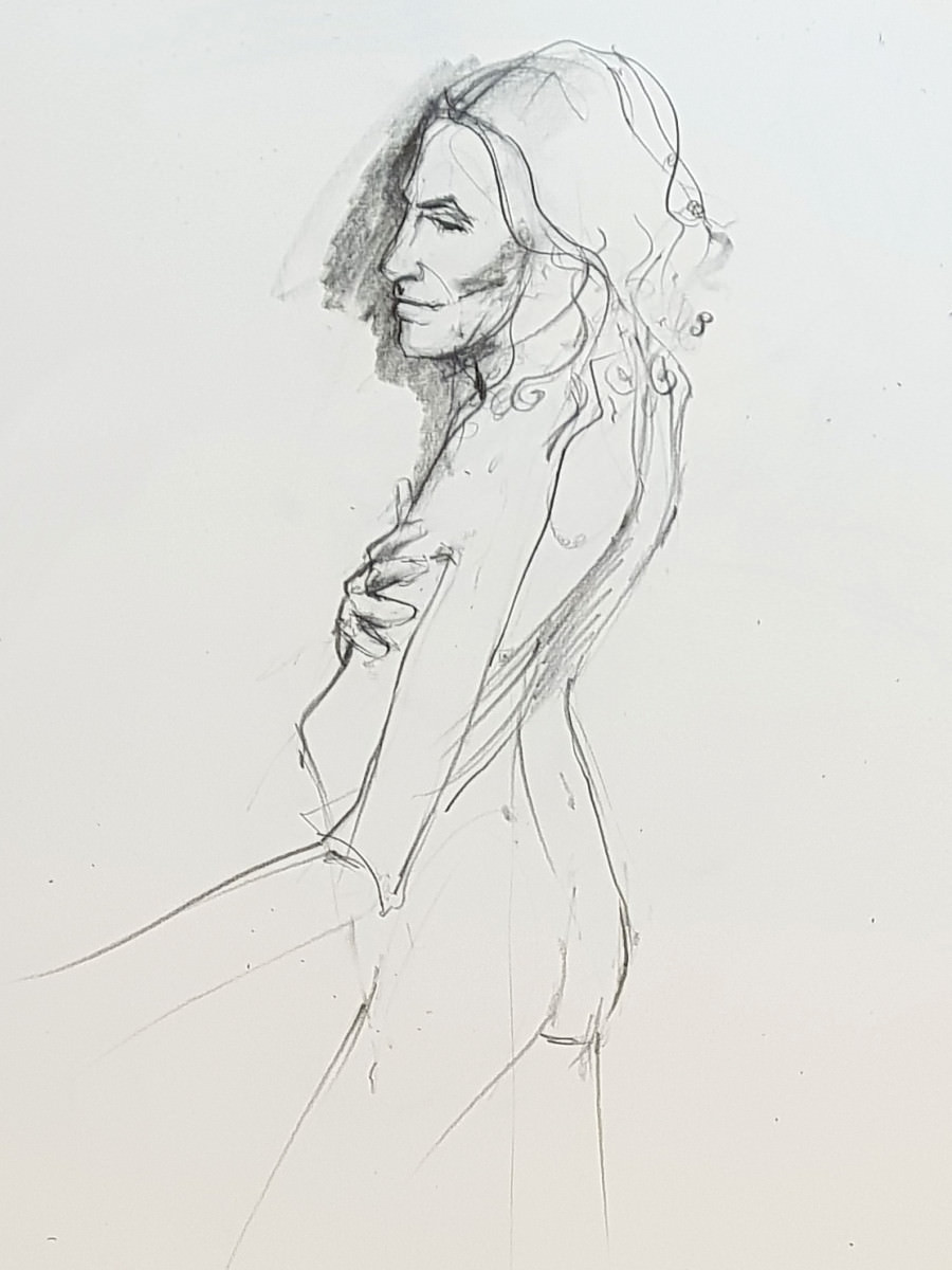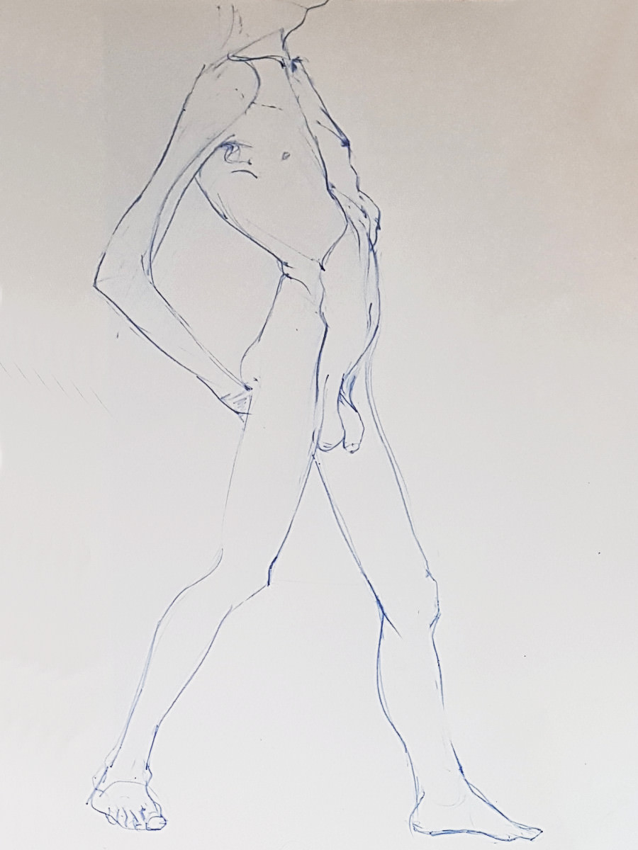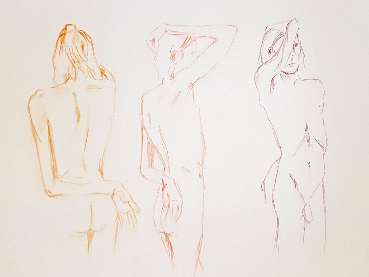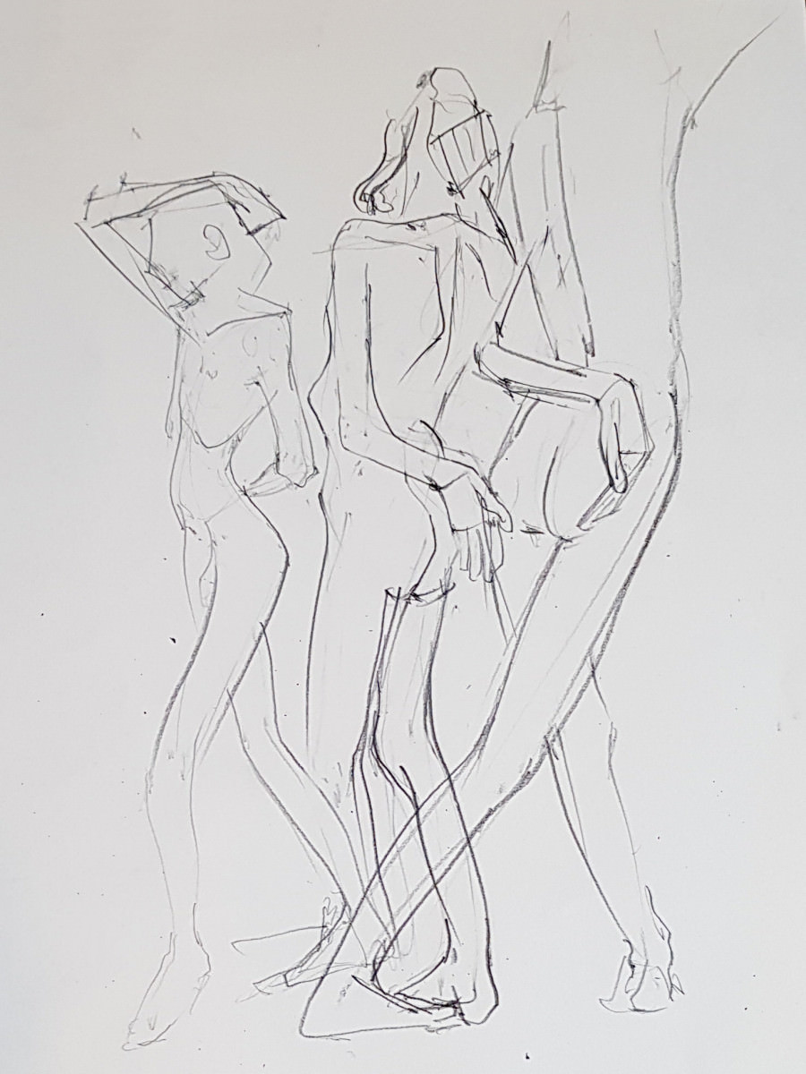 It’s always a joy to pose for Leytonstone Life Drawing; for the space, the music, the lighting, the pose lengths, the relaxed vibe, and especially for organiser Jennifer Wolf. Jenny has a natural warm-heartedness and infectious enthusiasm for art-making that in turn makes me conscious of wanting to do better myself. It’s a positive feeling.