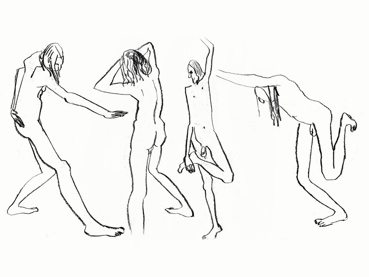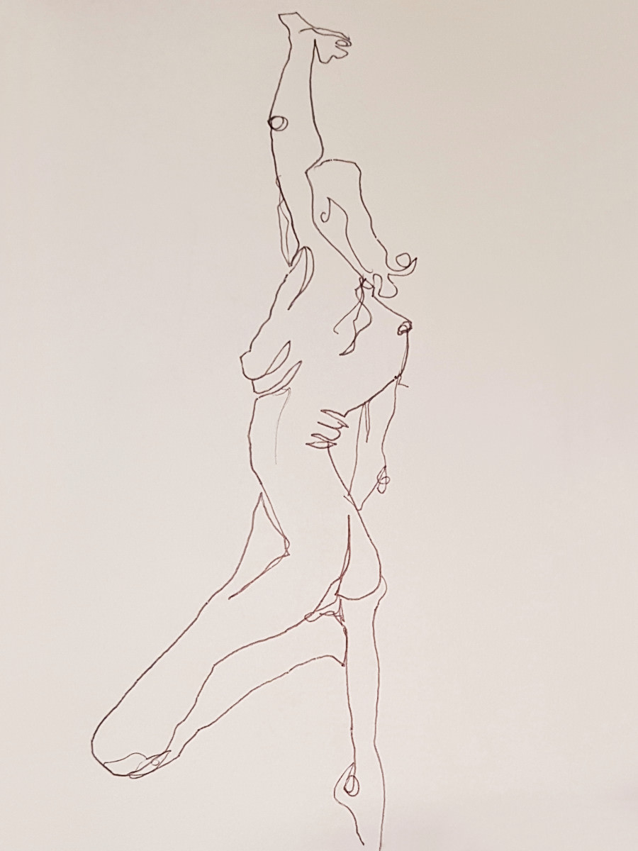 And indeed it did work… aside from the ache of having insufficient padding to support the bony points of my pelvis (all my own negligence), and my elevated right leg going completely numb. It was the only pose I miscalculated, however. Generally, I enjoyed the unique challenges of working as one model for two rooms simultaneously.