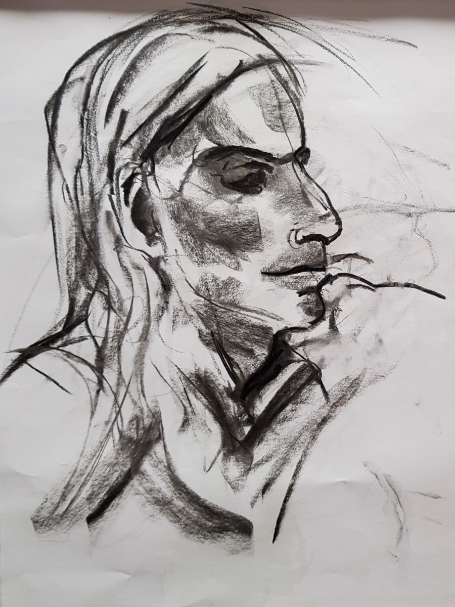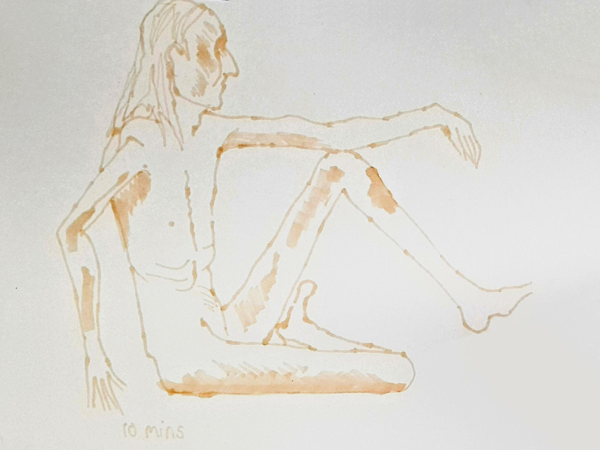 For this evening with LeNu Life Drawing, I was providing poses that ranged between 4 minutes and 20 minutes. In a separate room of Fairkytes Arts Centre a model was sitting for a single long pose as Sherlock Holmes. I’d posed as Sherlock Holmes once before with much-missed Art Macabre (‘Sherlock Bones‘); once was enough for me.