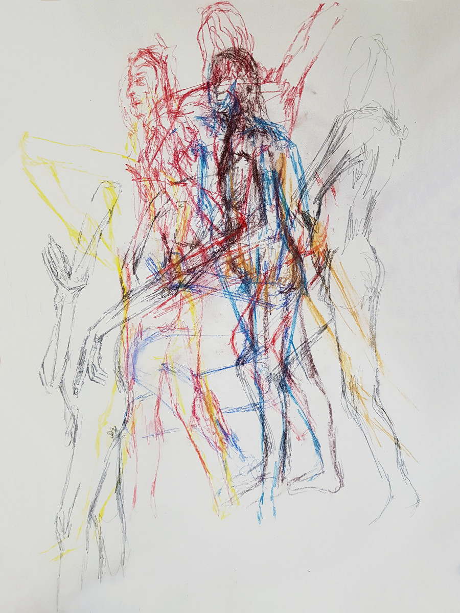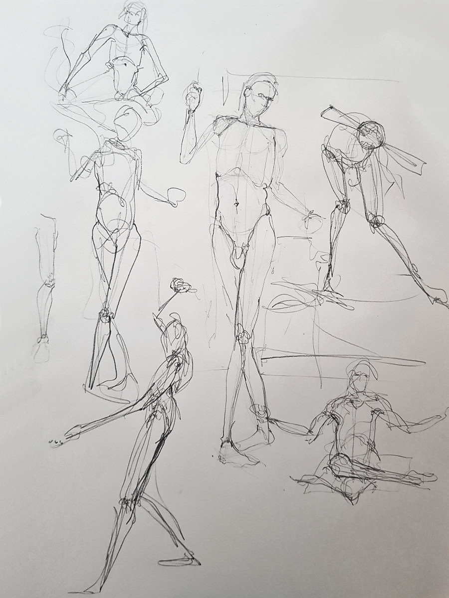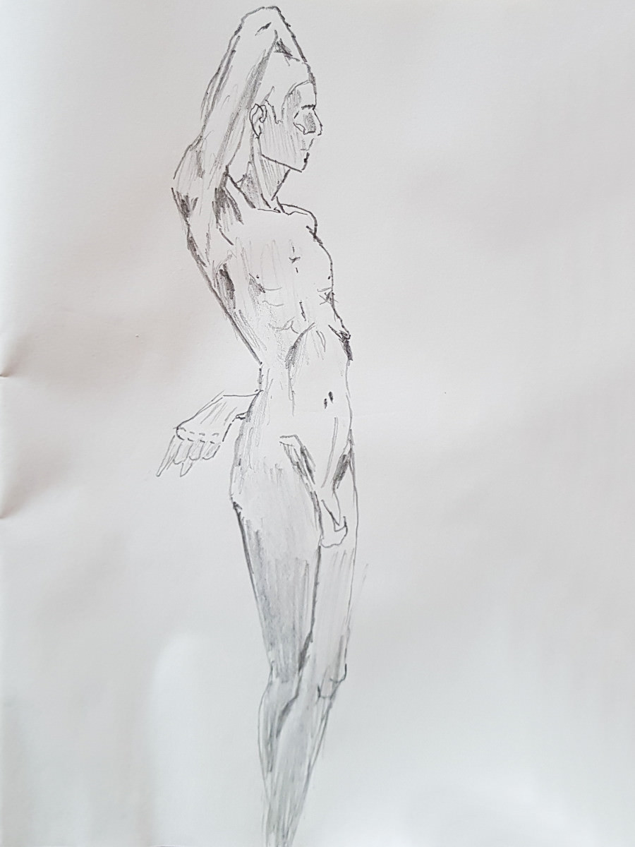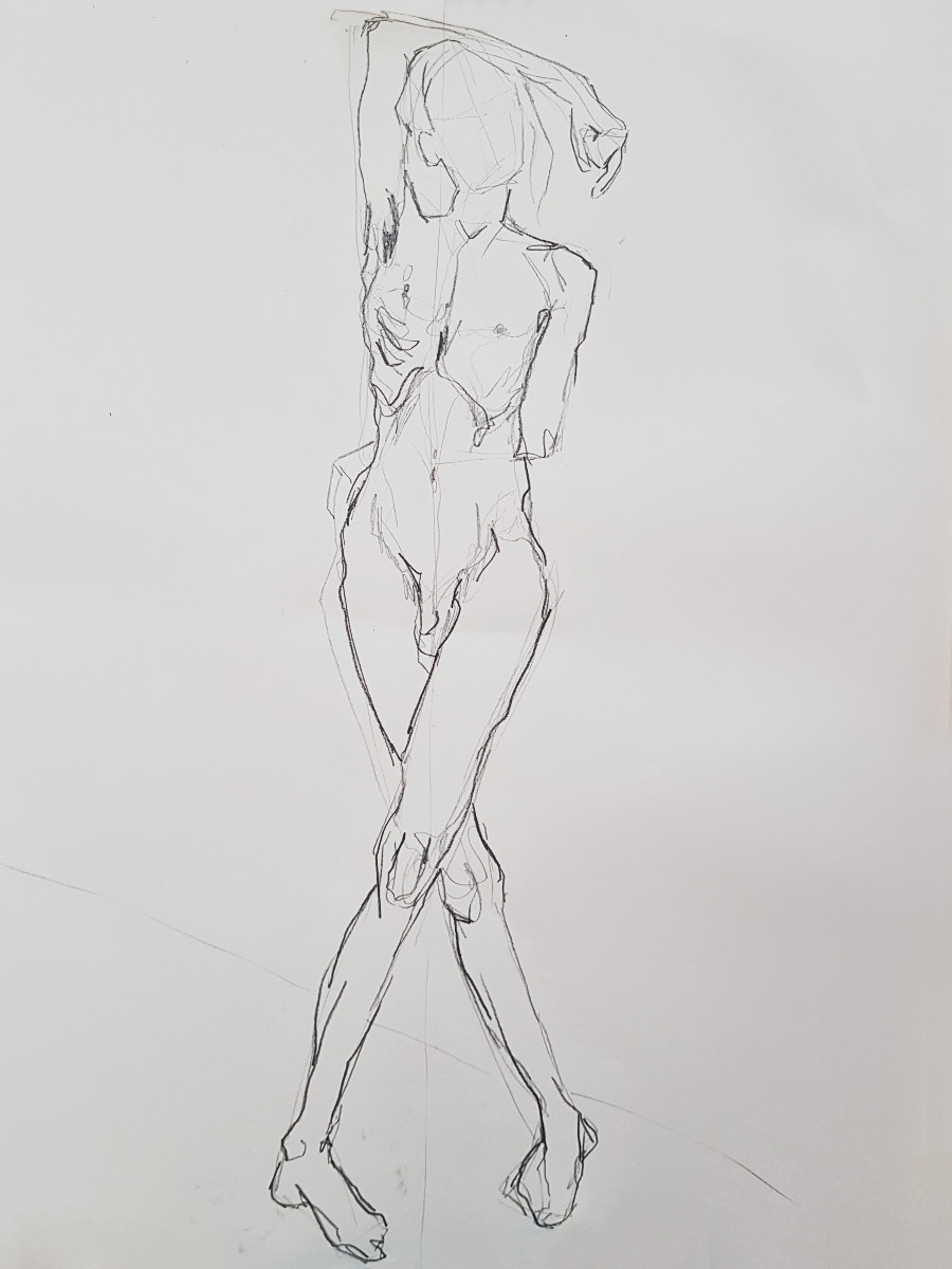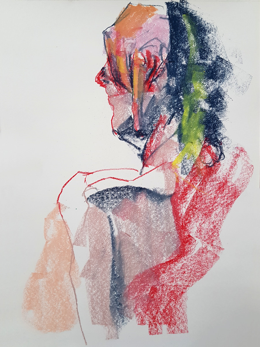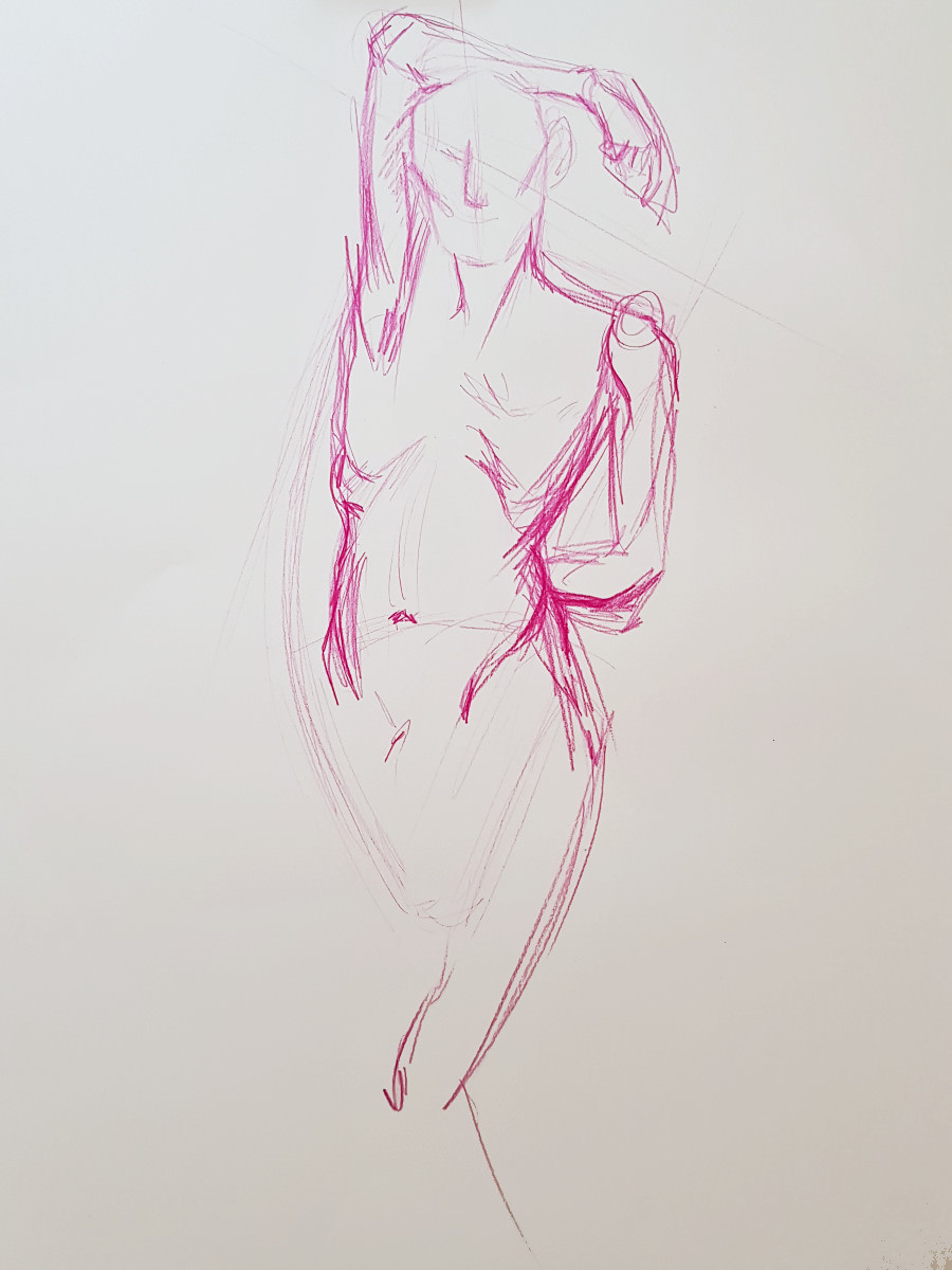 We slowed down after our half-time break, concluding this ‘part 1’ with two 20-minute poses. I felt strong throughout and stood for most poses, including the longer pair. I’d feared I might regret spending two hours walking round the National Gallery’s ‘Siena‘ exhibition before more walking to this job, but my spindly legs coped. Next, part 2…