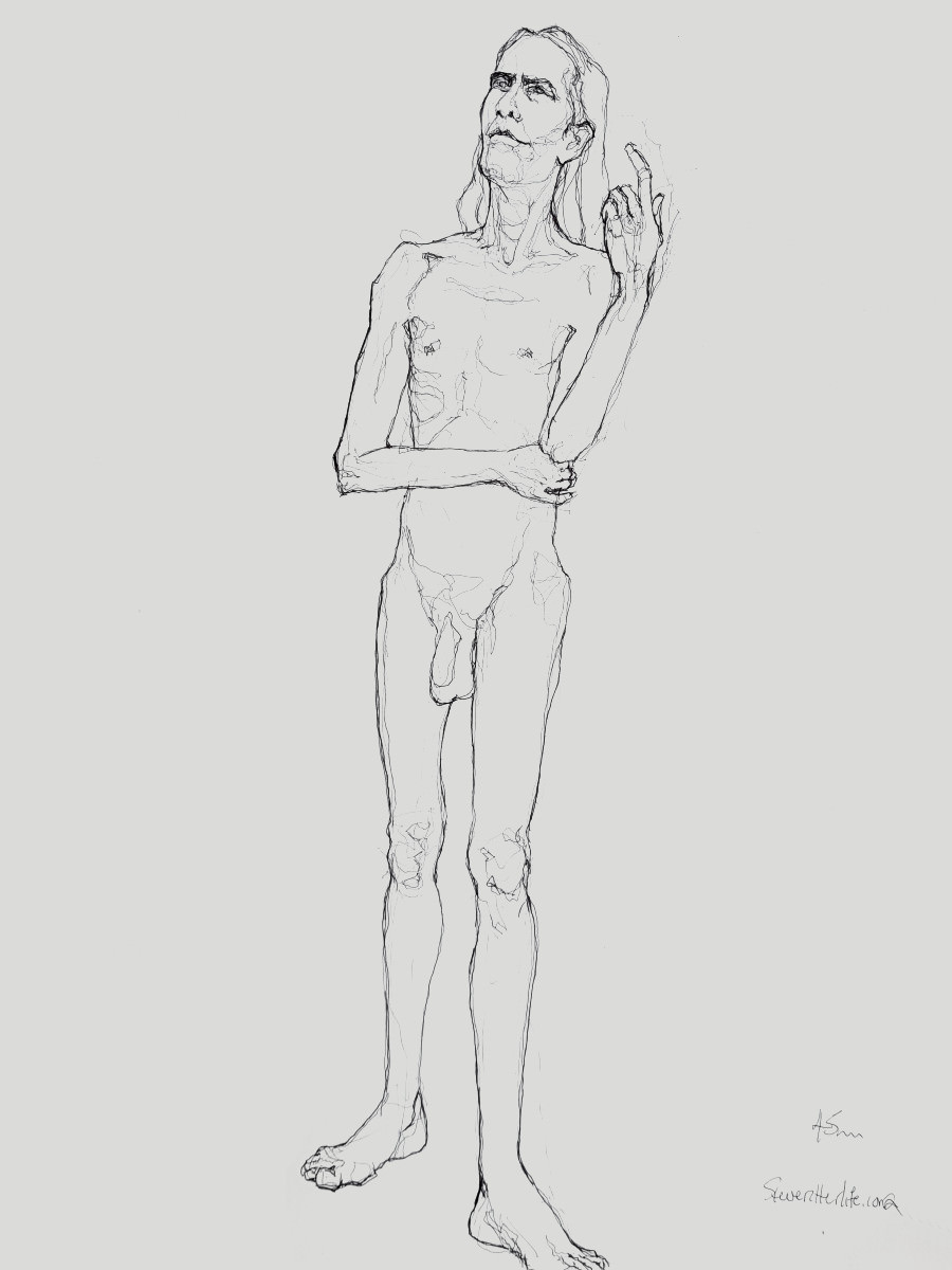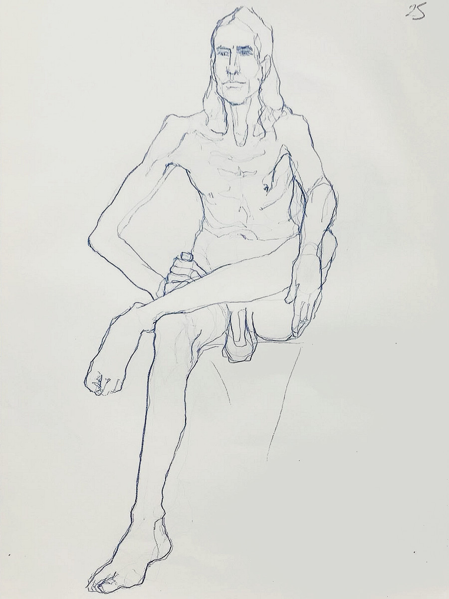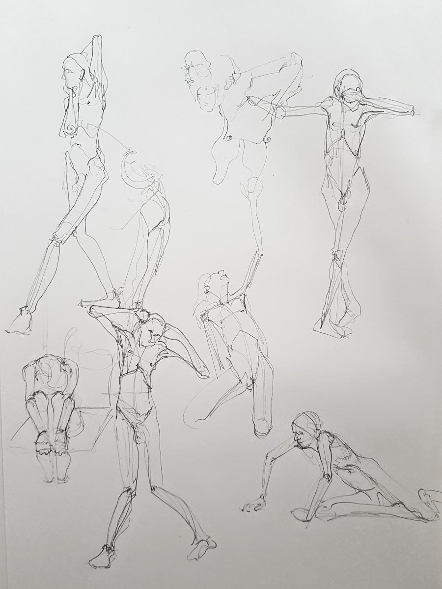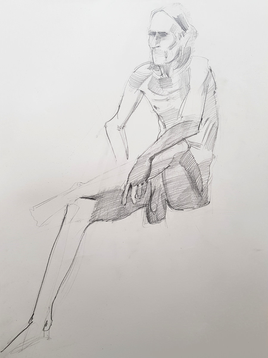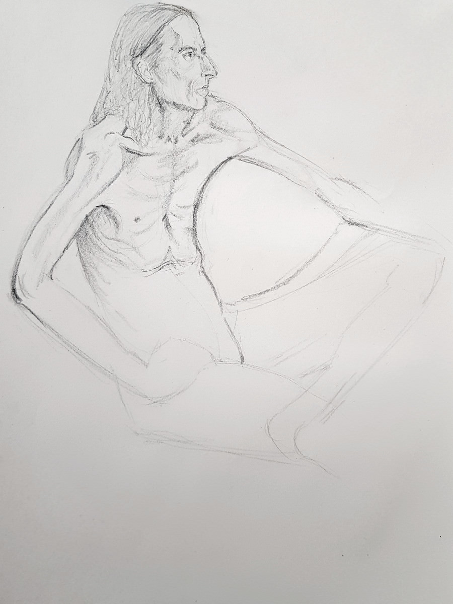 Having completed part 1 of my Saturday booking with London Drawing at Waterloo Action Centre half an hour earlier, it was time for part 2. Both parts run for two hours and begin with lots of short-length poses but whereas part 1 closes with two poses of 20 minutes, part 2 has a 40-minute pose. Duly it’s branded the “long pose session”.