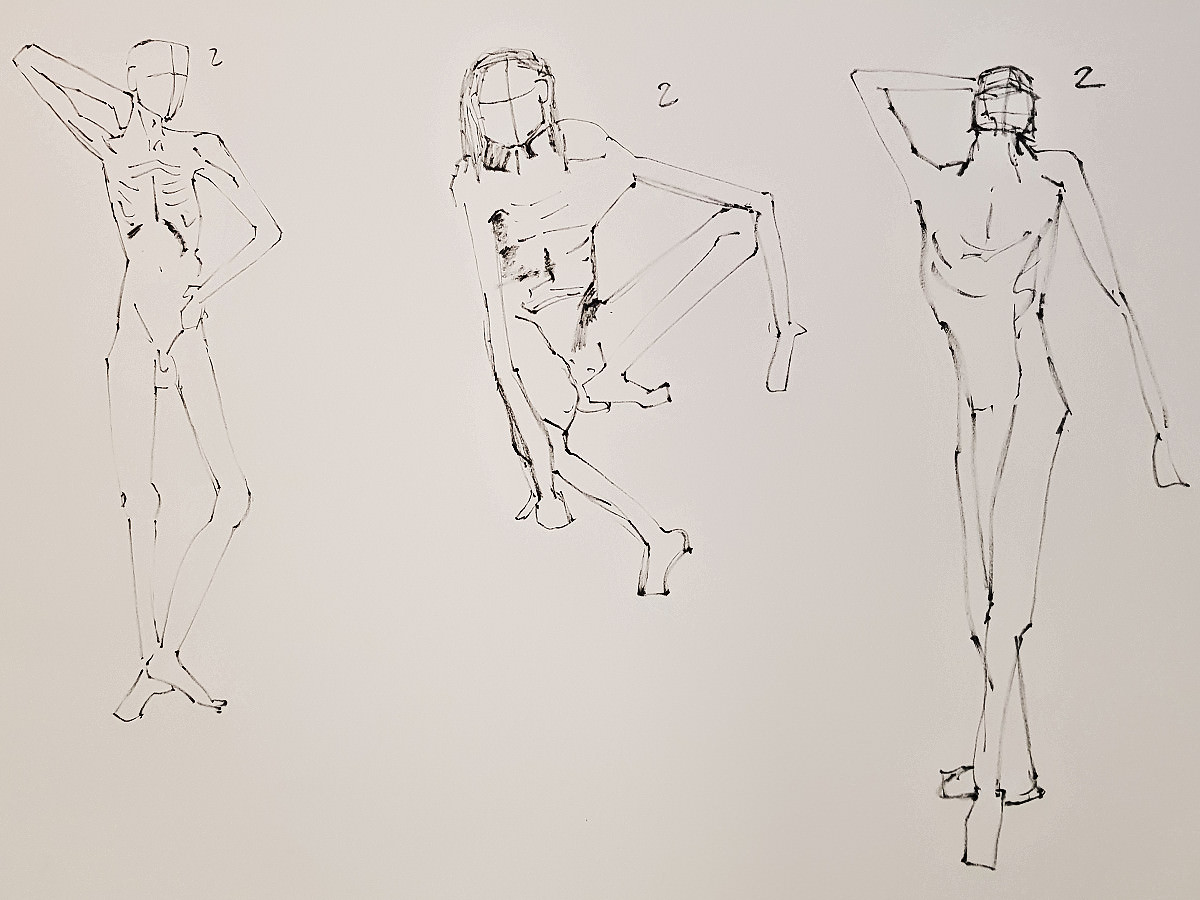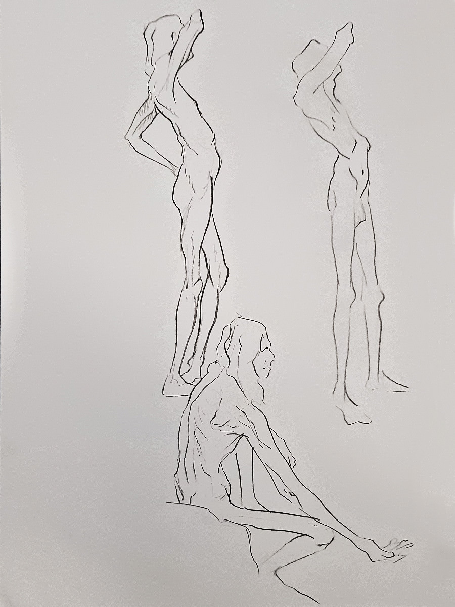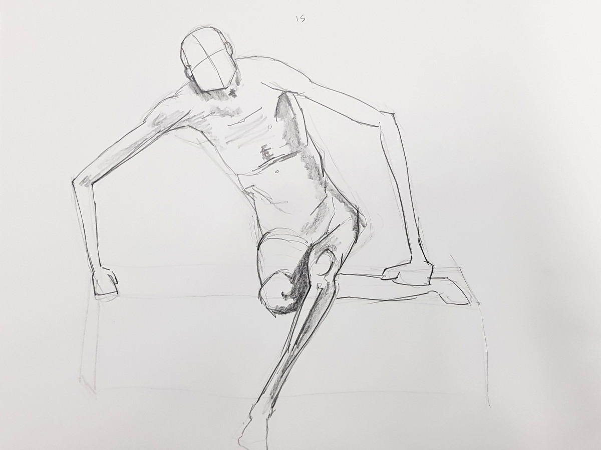 It’s highly energetic work, with two hours of drawing time featuring twenty-four poses, of which sixteen are just 1-minute or 2-minutes in duration. This means proportionally more time is spent in tensed dynamic postures rather than relaxed passive ones.