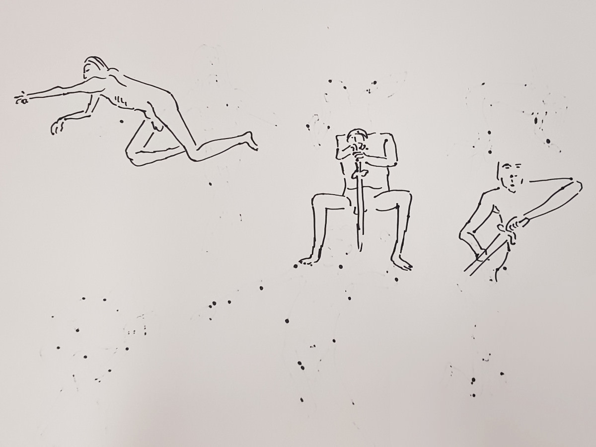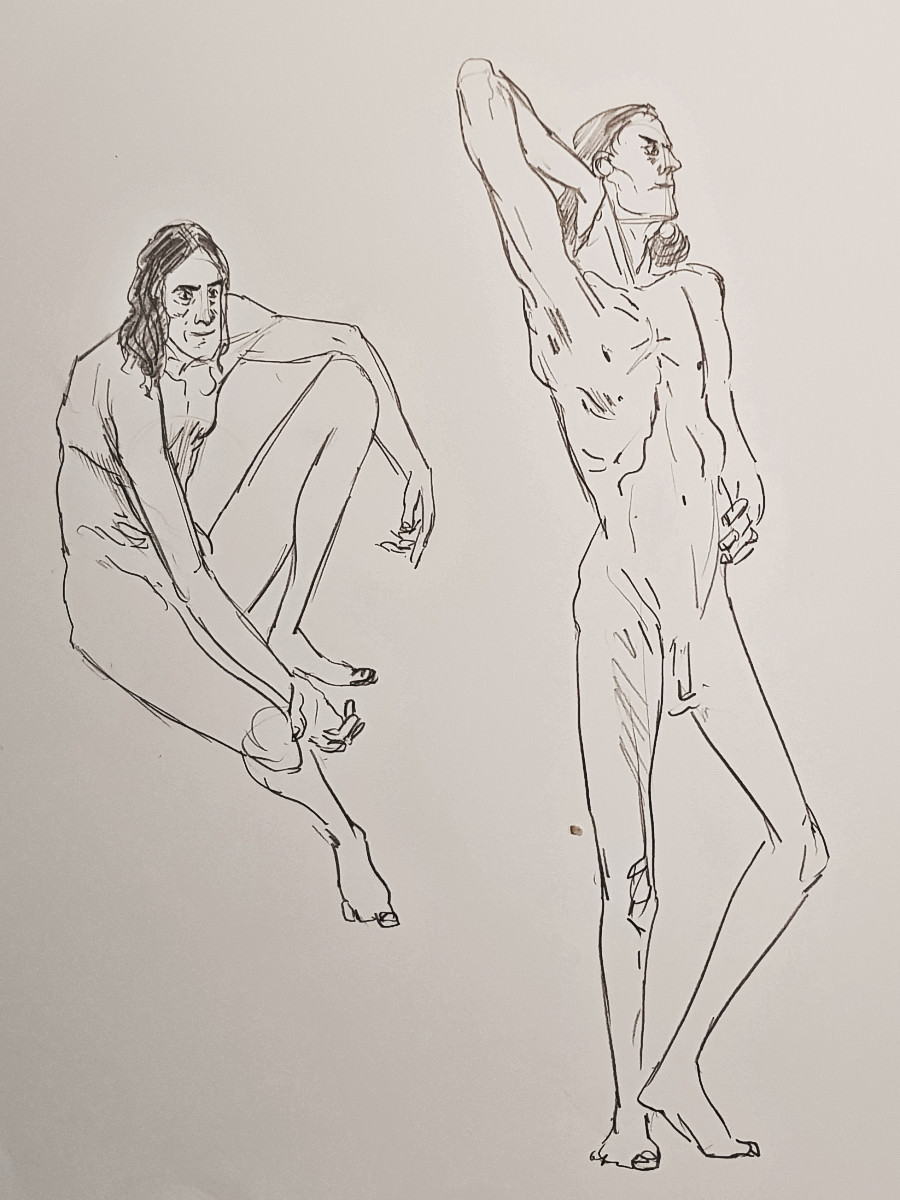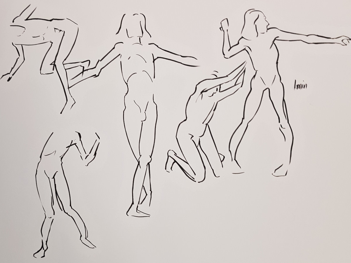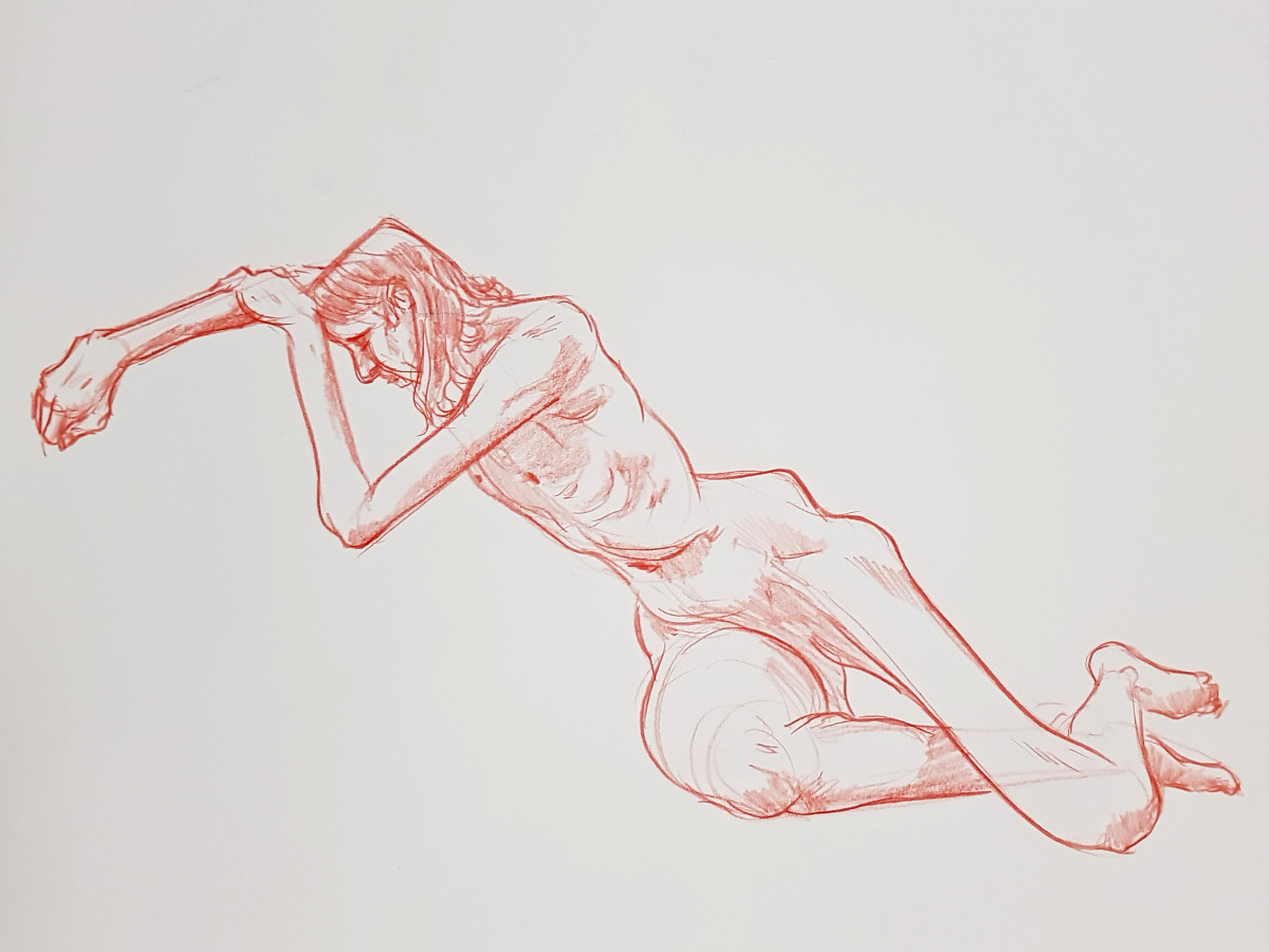 It’s highly energetic work, with two hours of drawing time featuring twenty-four poses, of which sixteen are just 1-minute or 2-minutes in duration. This means proportionally more time is spent in tensed dynamic postures rather than relaxed passive ones.