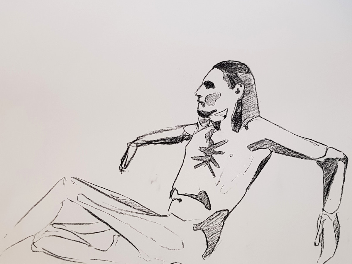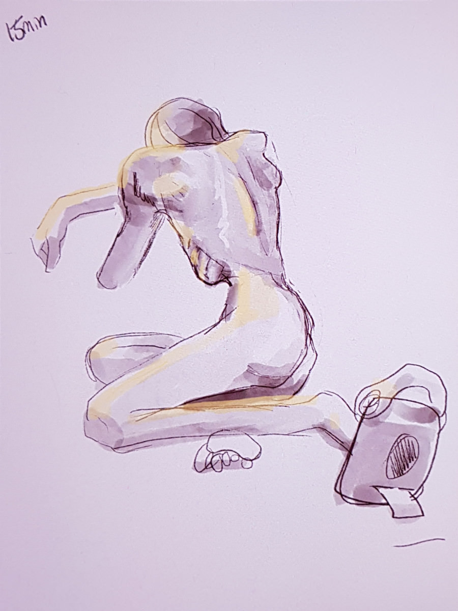 After a four-week break from modelling, I’m back into a seven-day period that’s set to include at least two full-day bookings and three evening bookings. This started with a session run by the animators of Framestore at their Cosy Life Drawing group.