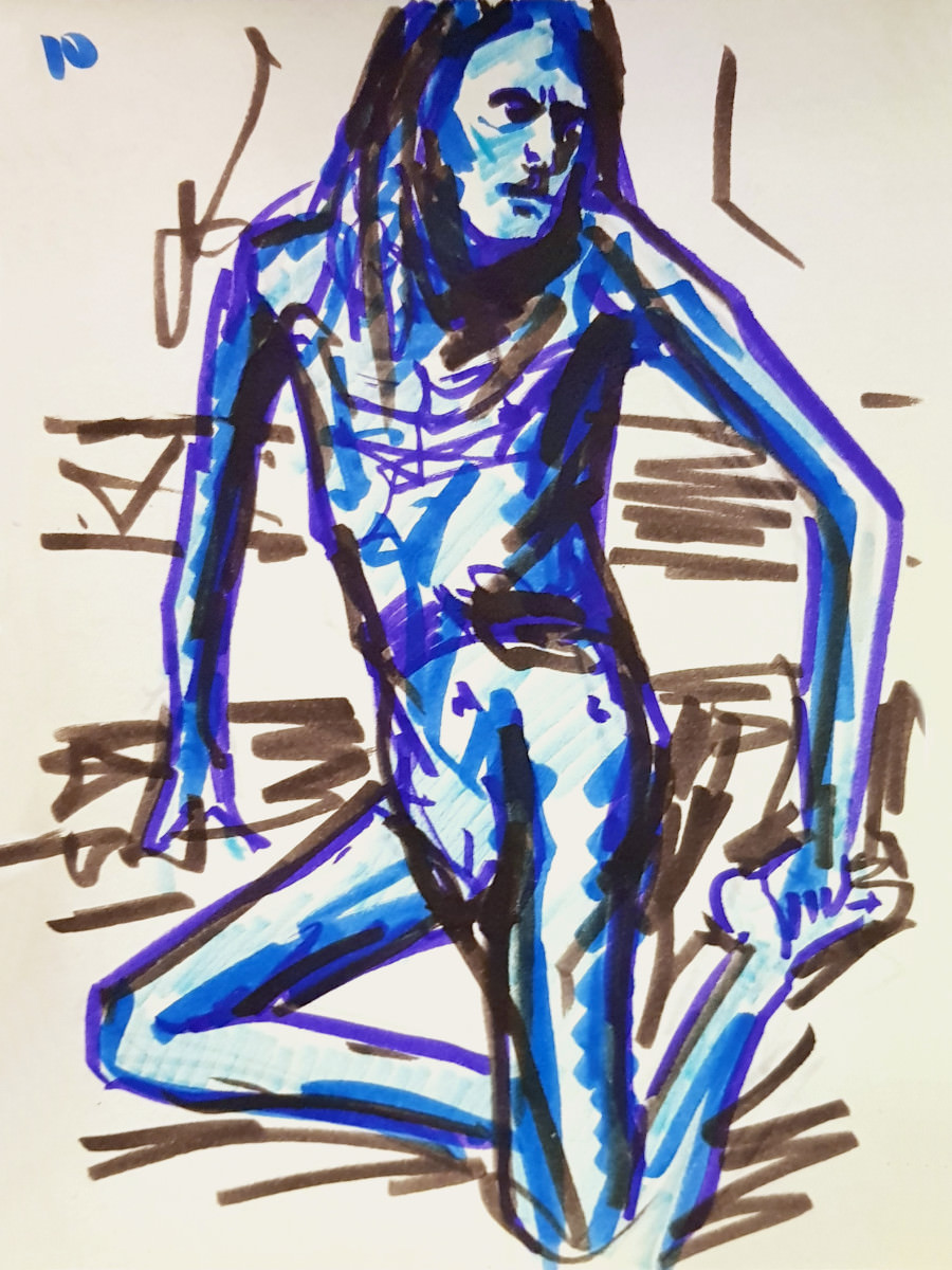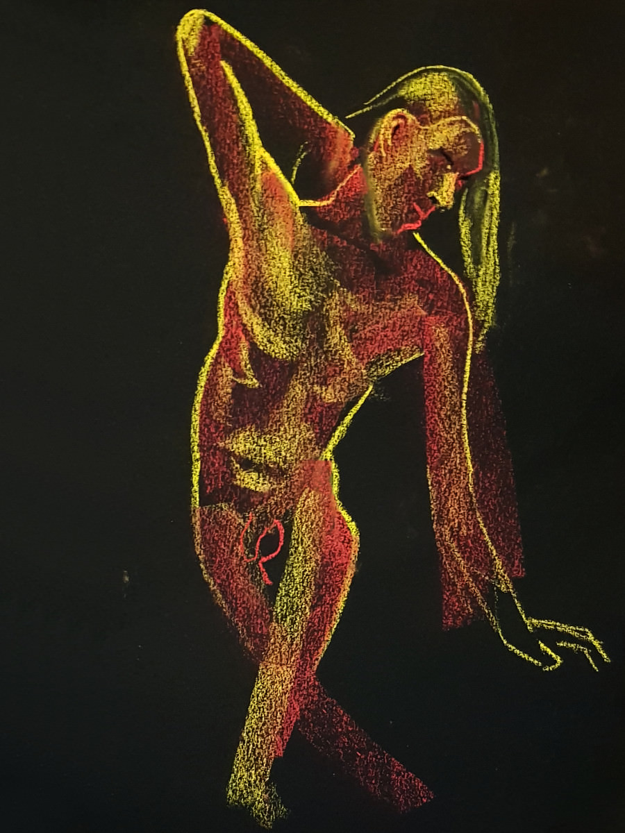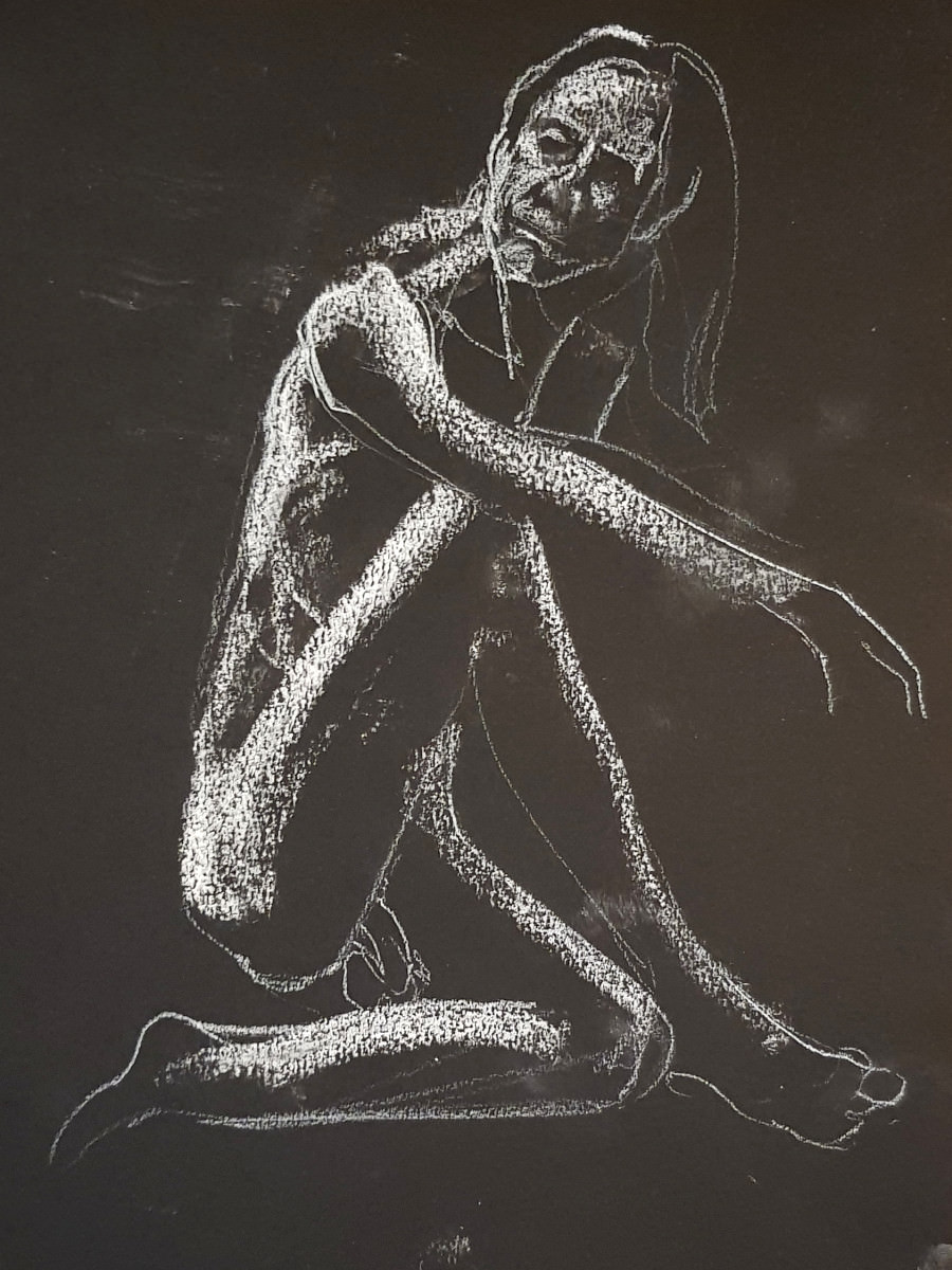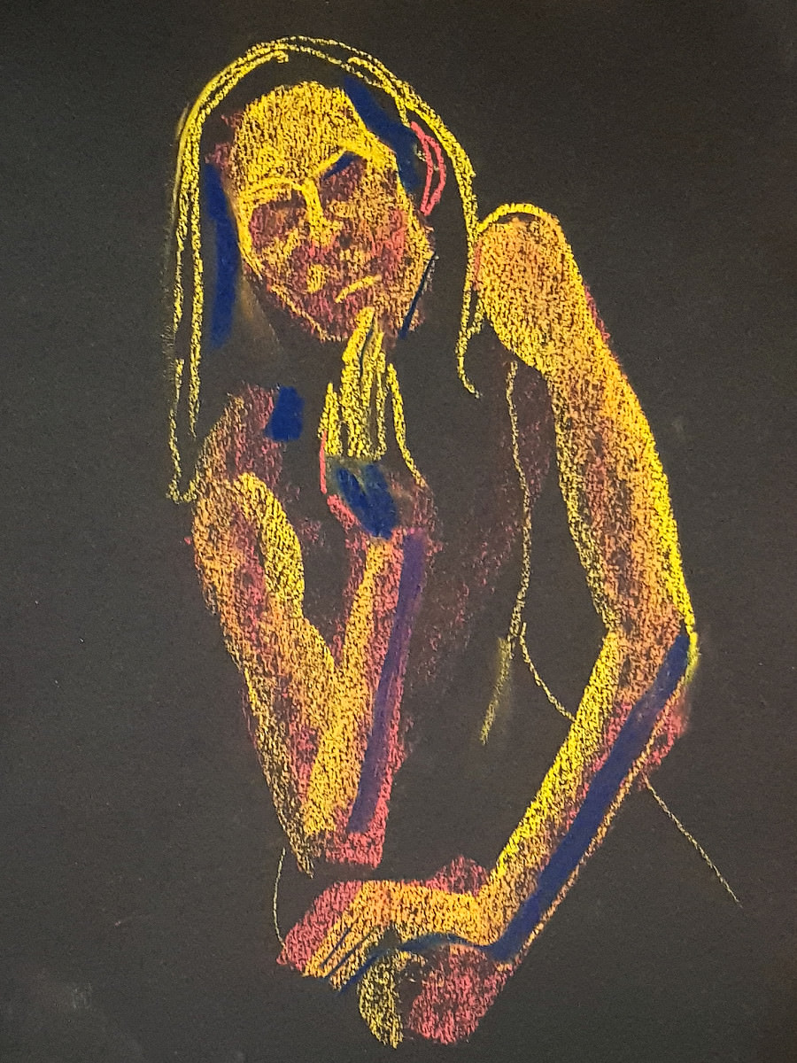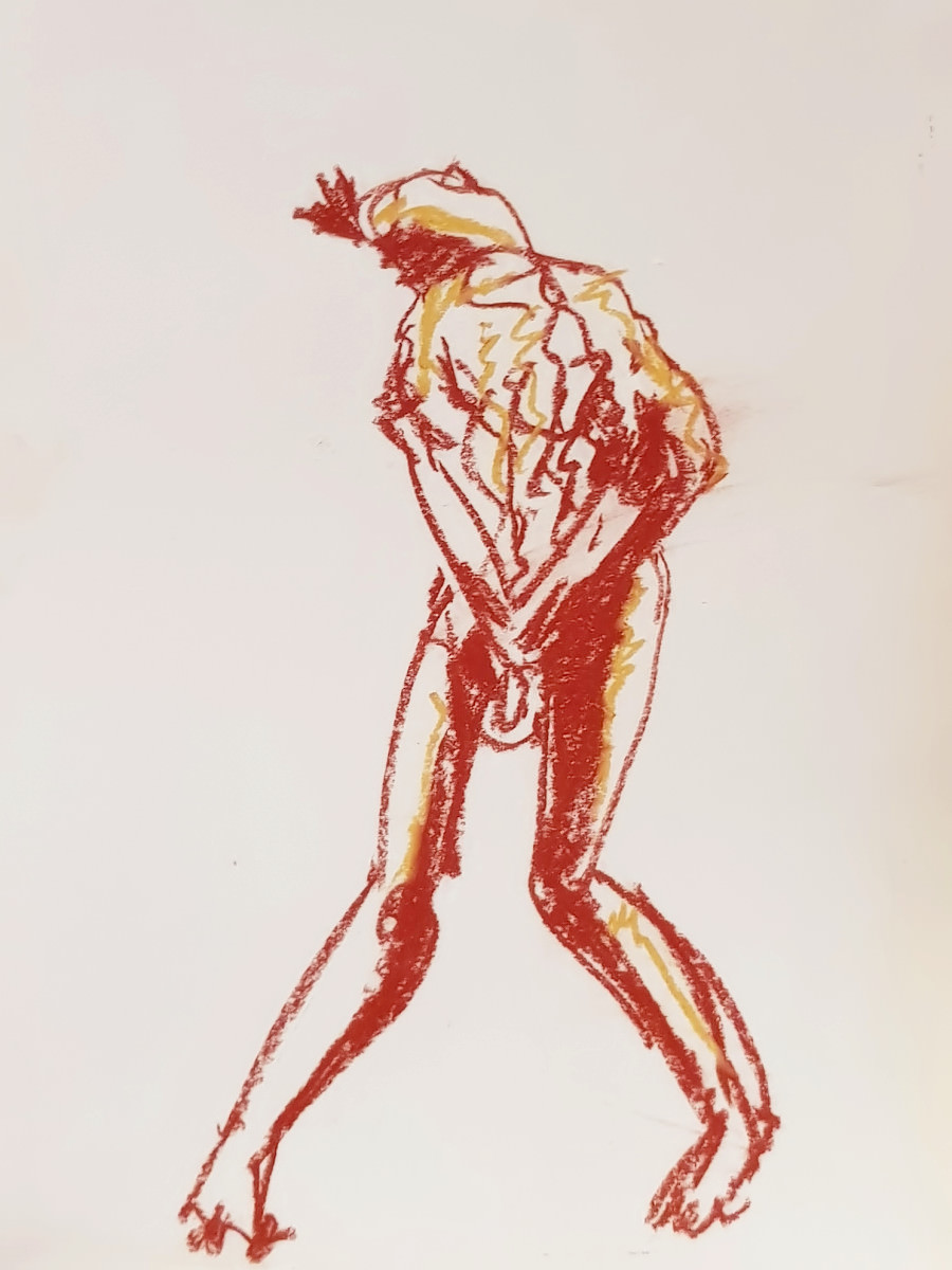 The final pose was a hurty one, as were a couple of the 1-minute / 30-second poses, but I survived. At the end I dressed in a side room then rejoined organiser Catherine Hall and all the artists to admire their creativity. So much freedom of expression, with confident lines and colours in abundance. I love working here. Good to be back.