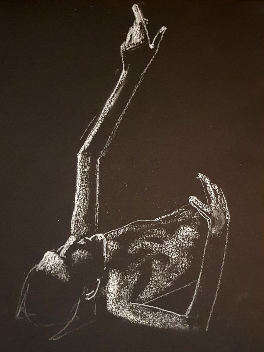 What I’ve missed, however, is dynamic short-pose work. This evening at The Star by Hackney Downs with Drawing the Star was my first such booking in a month. I was rusty but happy to be rusty as it meant I didn’t start out with my head full of over-used poses. I decided not to think exactly what shapes I would make till each was due.