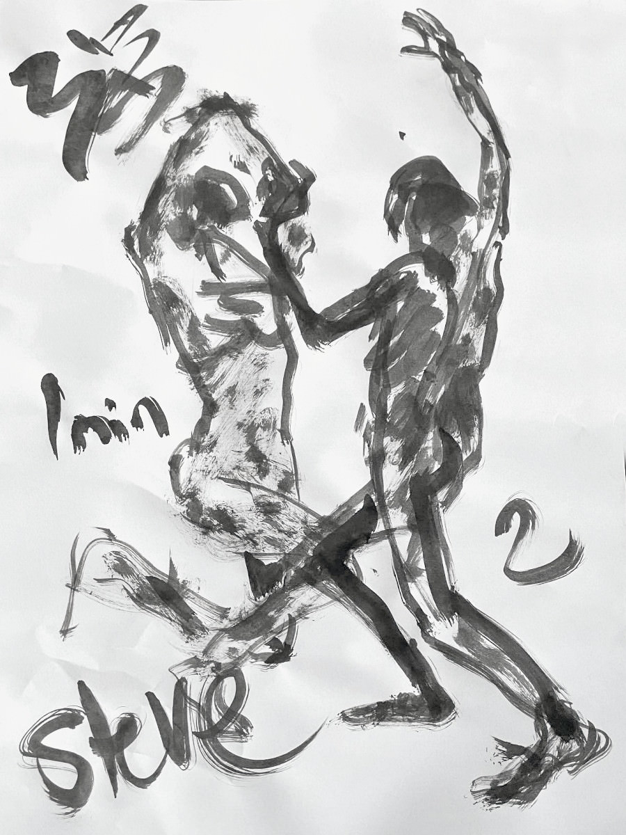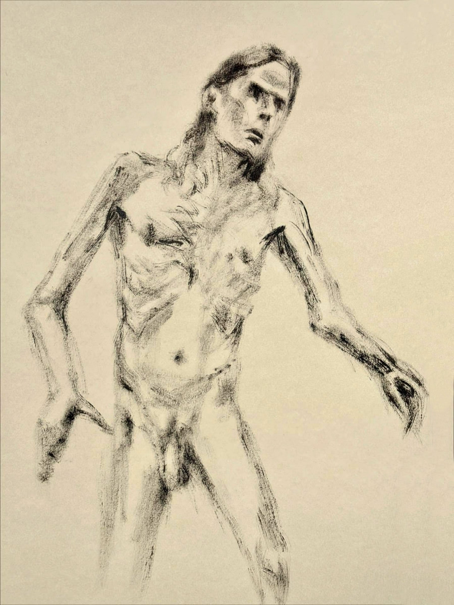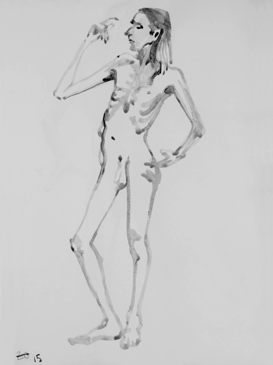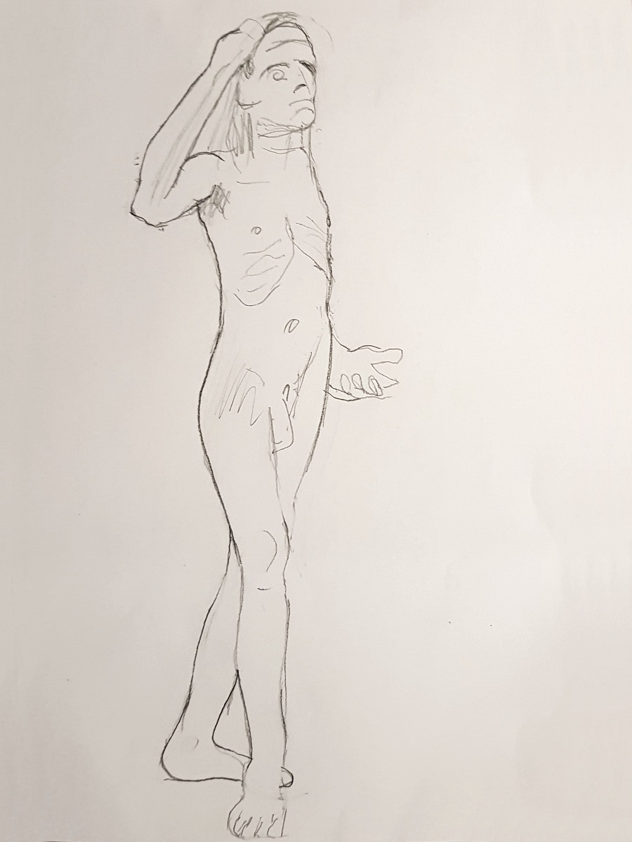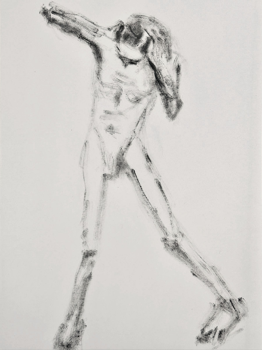 Setting to work with a nostalgic head and a warm heart, I progressed through a fairly spontaneous sequence of poses that felt suitable for slightly lop-sided oval of artists. The only premeditated posture was the 5-minute pose, for which I recreated my very first pose at my very first Moon and Nude session. All those years ago… 🙂