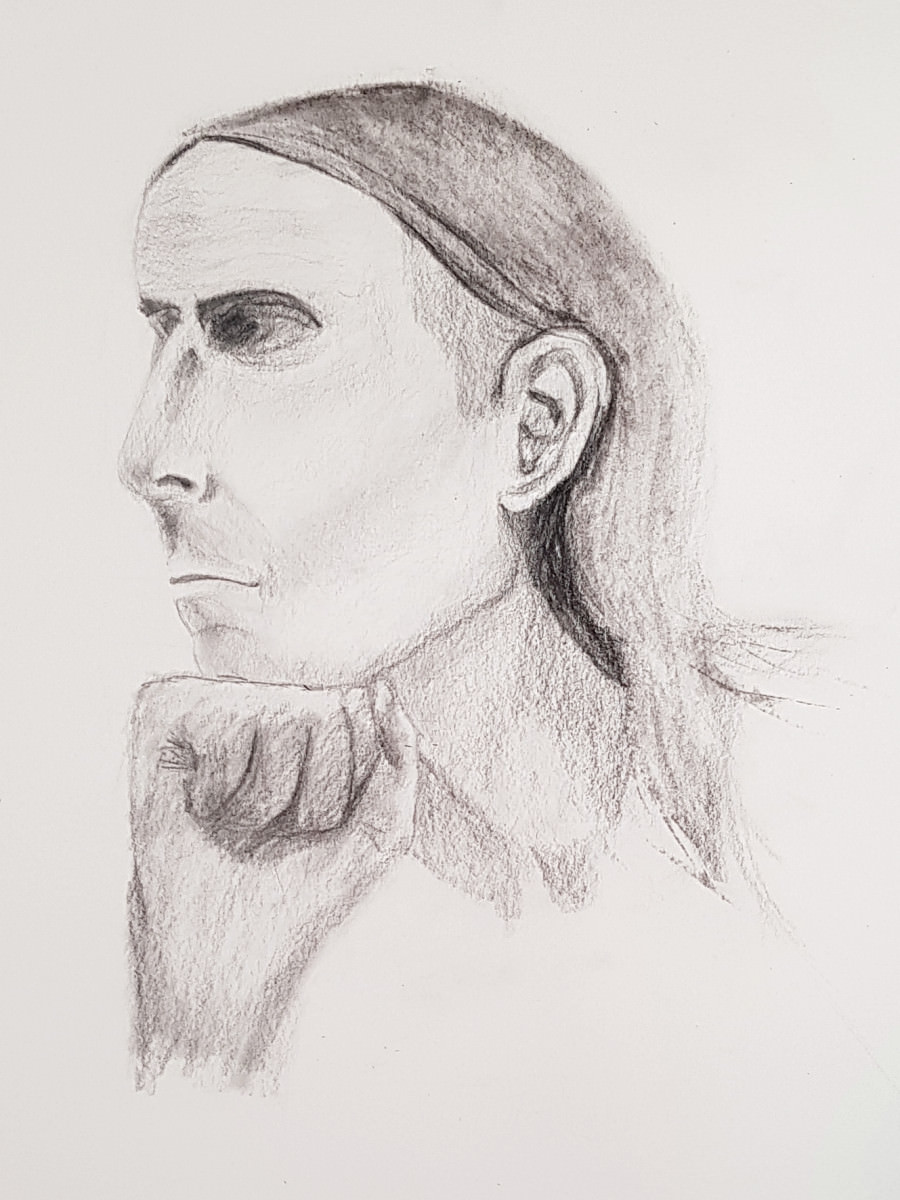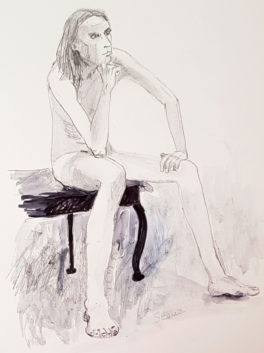 I was asked to warm-up with four 2-minute poses, which caught me off guard slightly, but for the benefit of those who had drawn me earlier I contorted into all-new shapes. Then came the main feature: a 90-minute long pose with a break in the middle. Time to be seated, in a position from which no emerging aches could easily be foreseen.