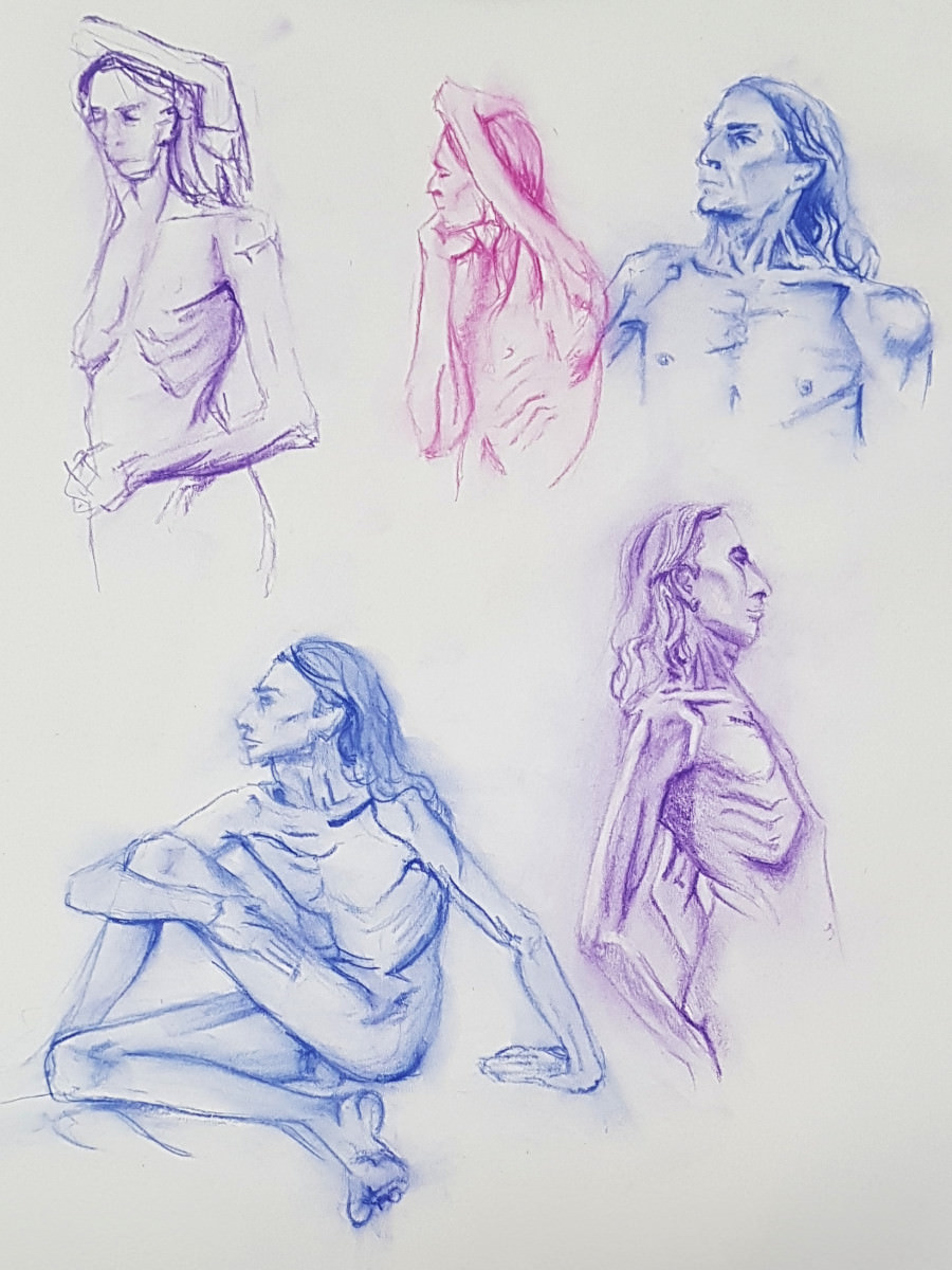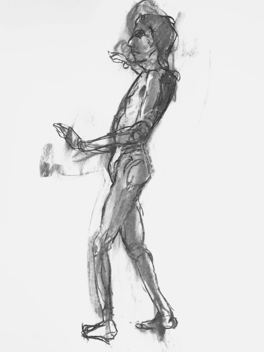 Long sequences of short poses are probably still my favourite part of this job. They’re always fun, a chance to test the imagination, and warming too; warming to the extent that I had to switch off one of the two fan heaters on duty this December afternoon.