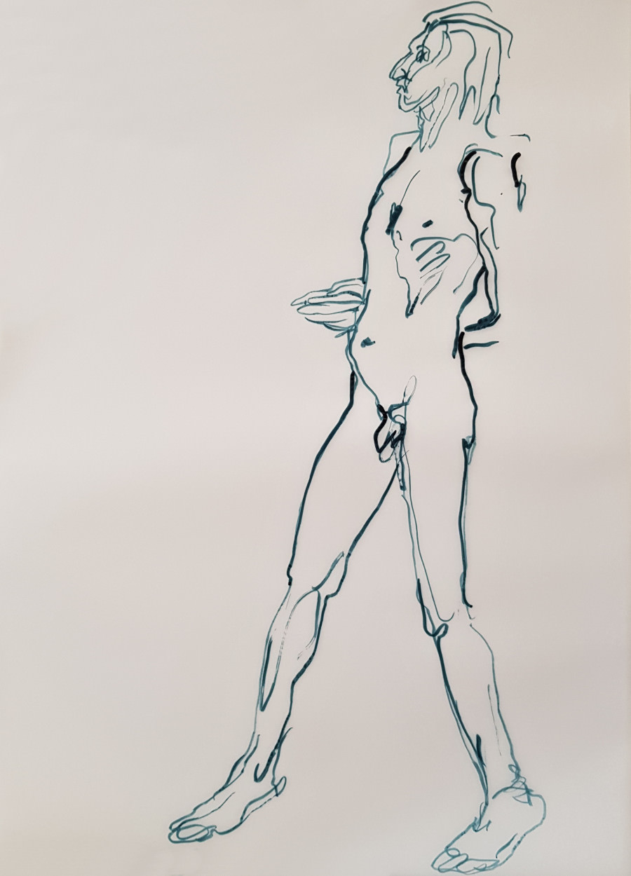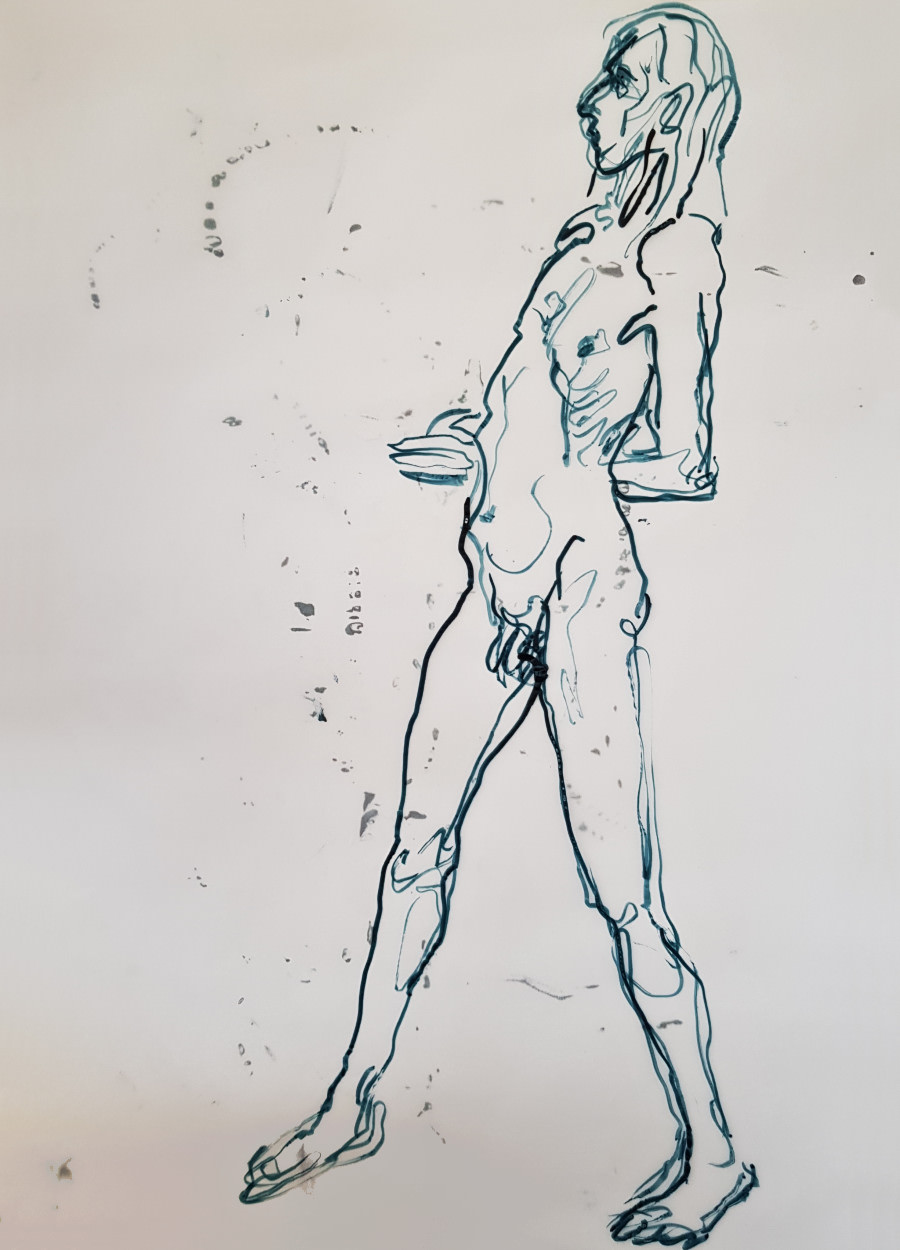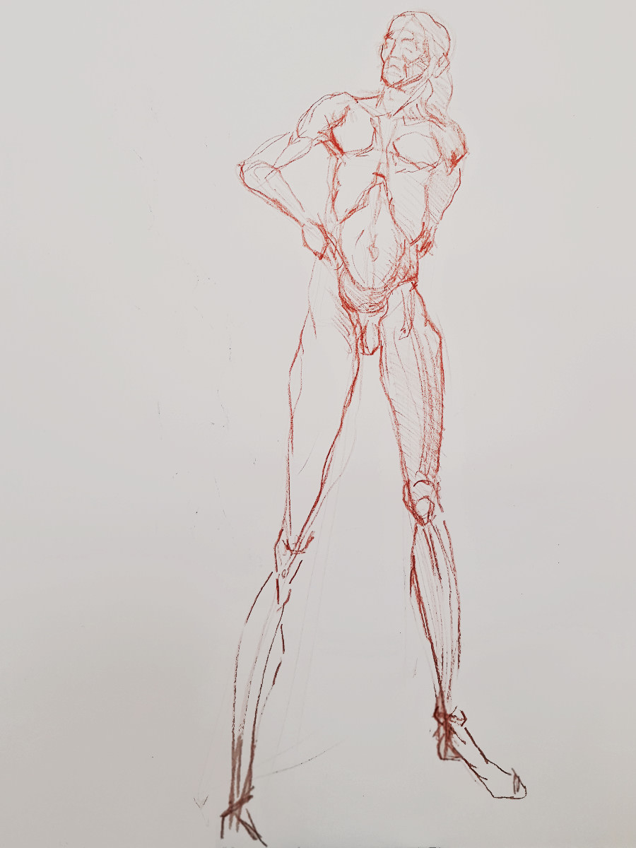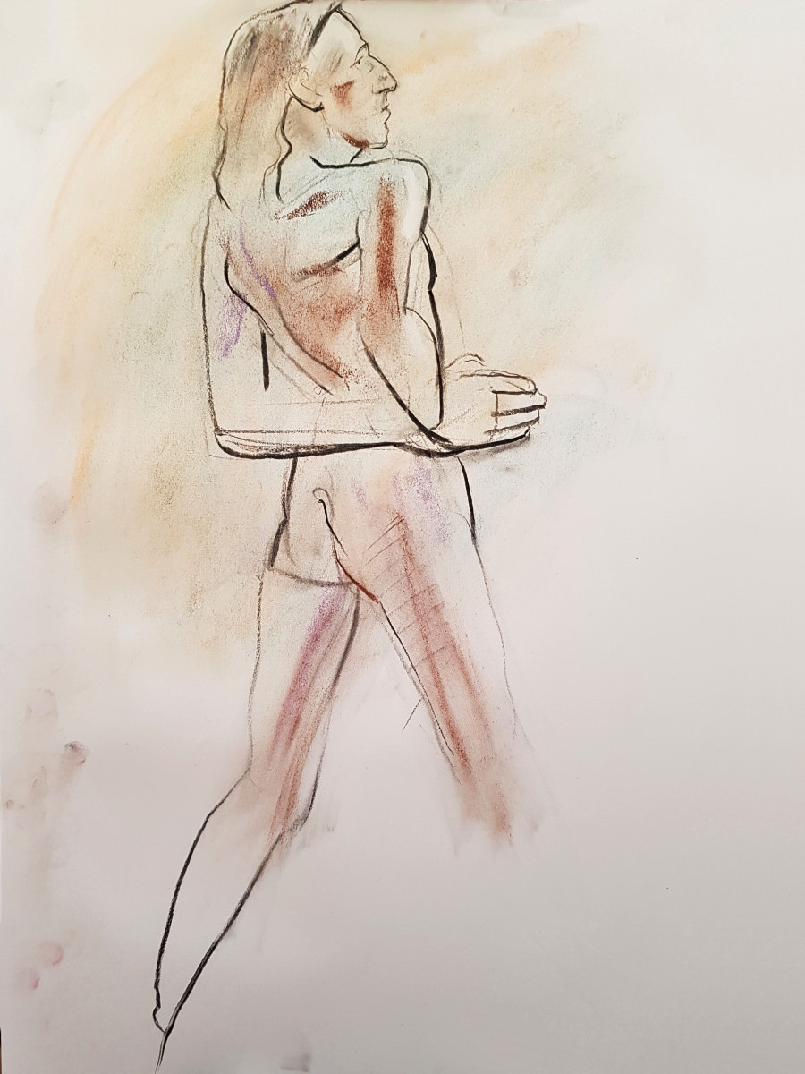 As per my last visit here, this session was led by irrepressible tutor, artist, model, and all-round force of nature, Andrea Voisey. We started with a 10-minute warm-up, then she set me barrelling through thirteen poses of 1, 2, 3 or 5 minutes.
