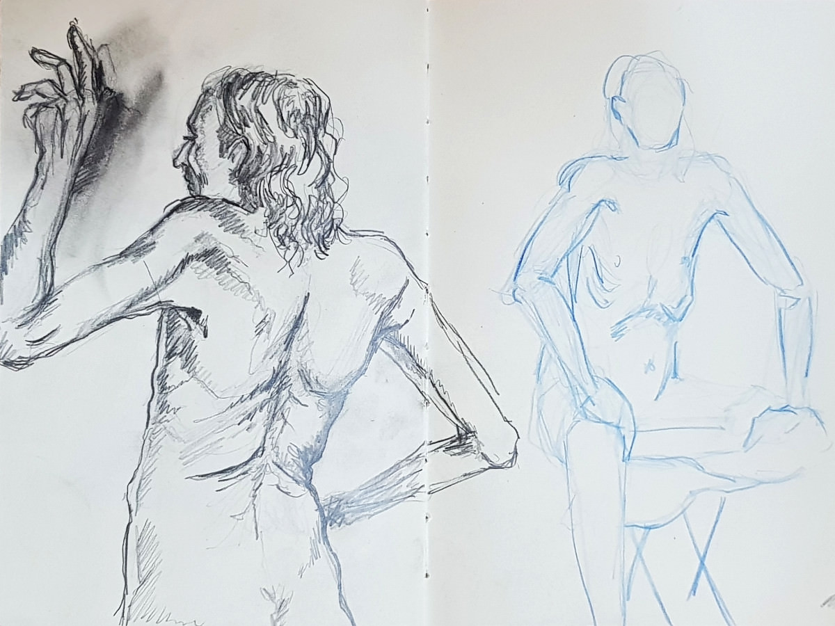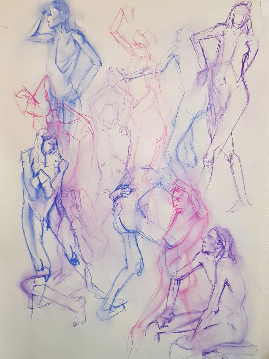 Nine quick poses of 1, 2, 3 or 5 minutes followed, after which we changed pace. One pose of 21 minutes took us to a break, and then a single 40-minute pose brought our afternoon to a close.