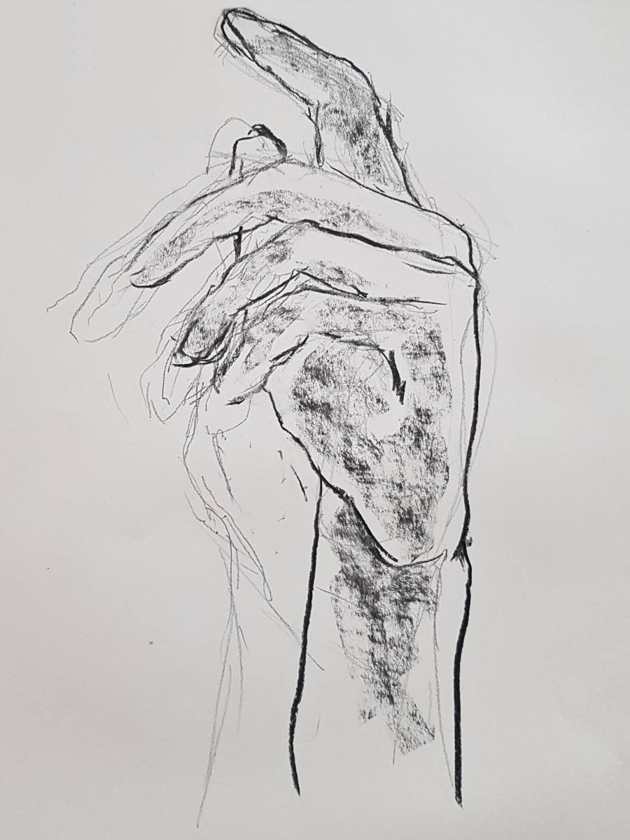 Working at the heart of a big hall packed with dozens of artists at easels or chairs, all enclosing me in a grand horseshoe, I felt privileged. It’s work that can be demanding, draining, objectifying, painful and misunderstood, but it lifts me to be wanted for it.
