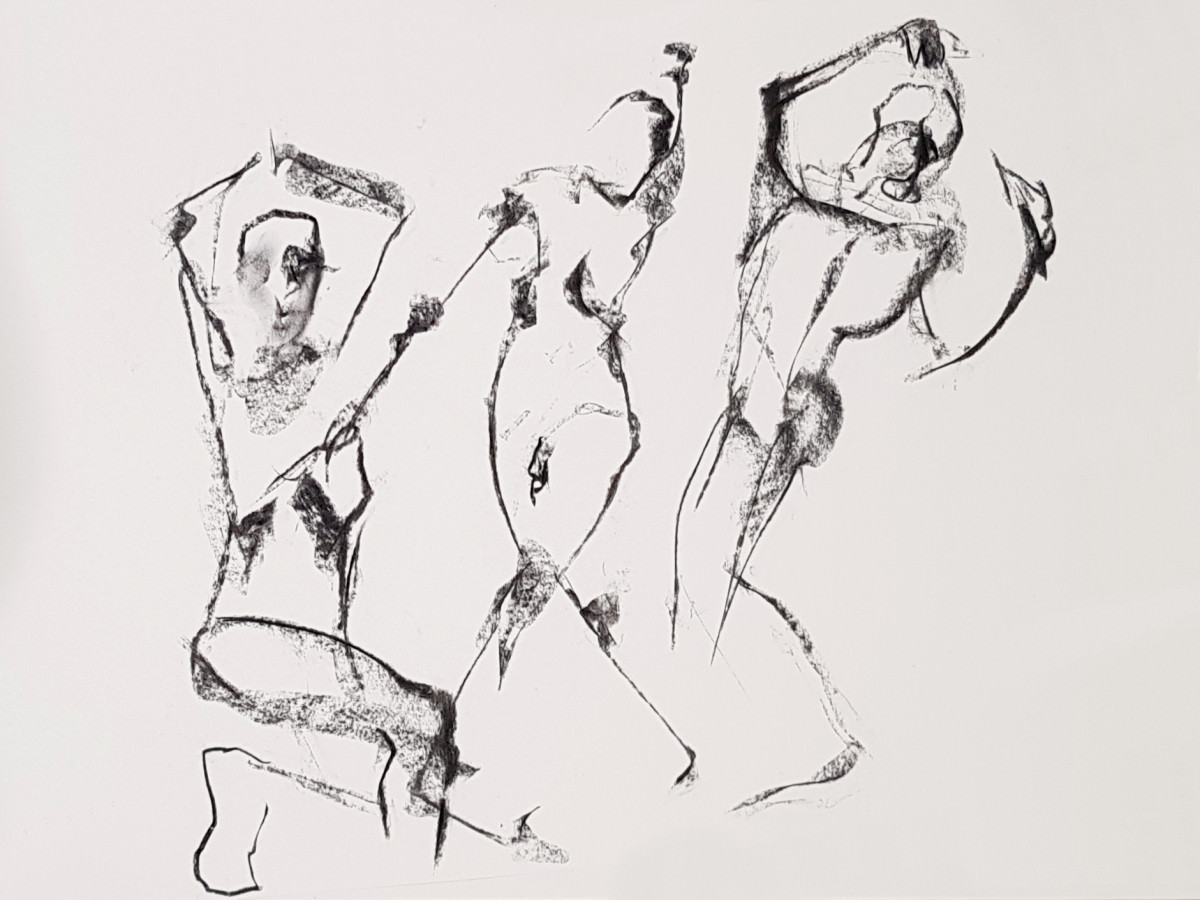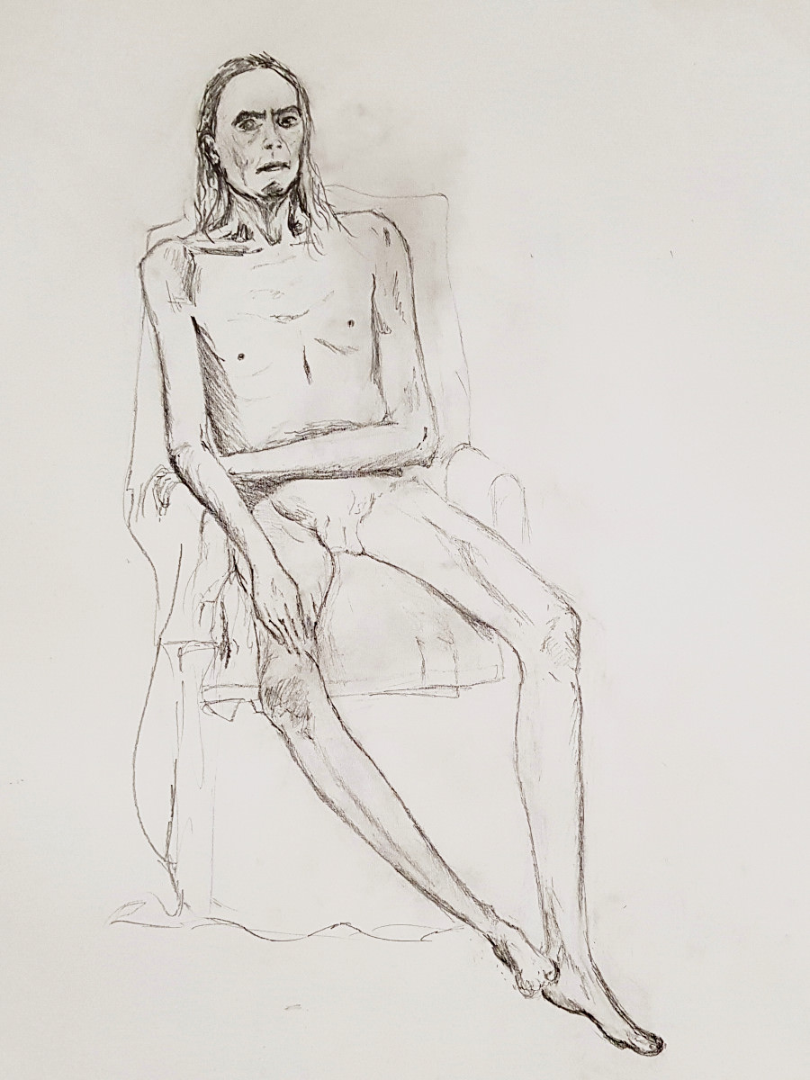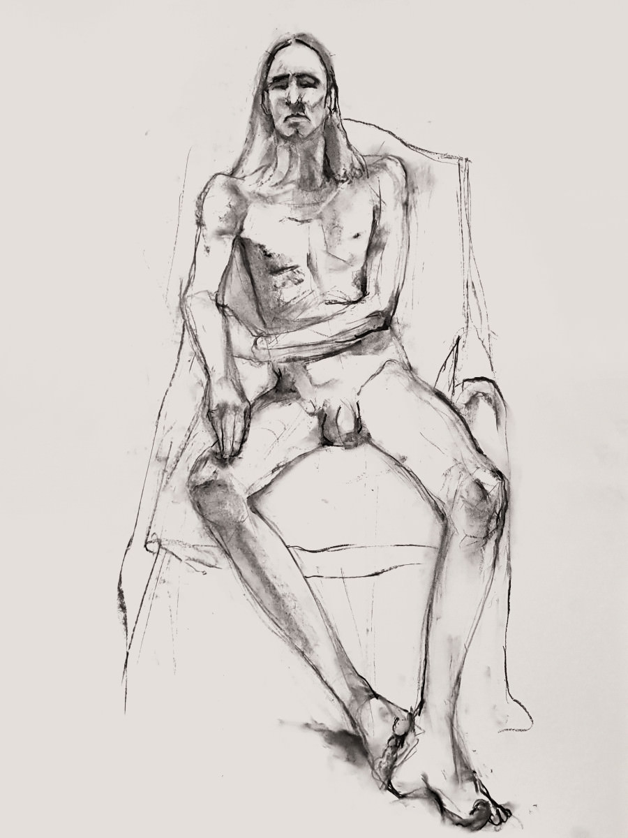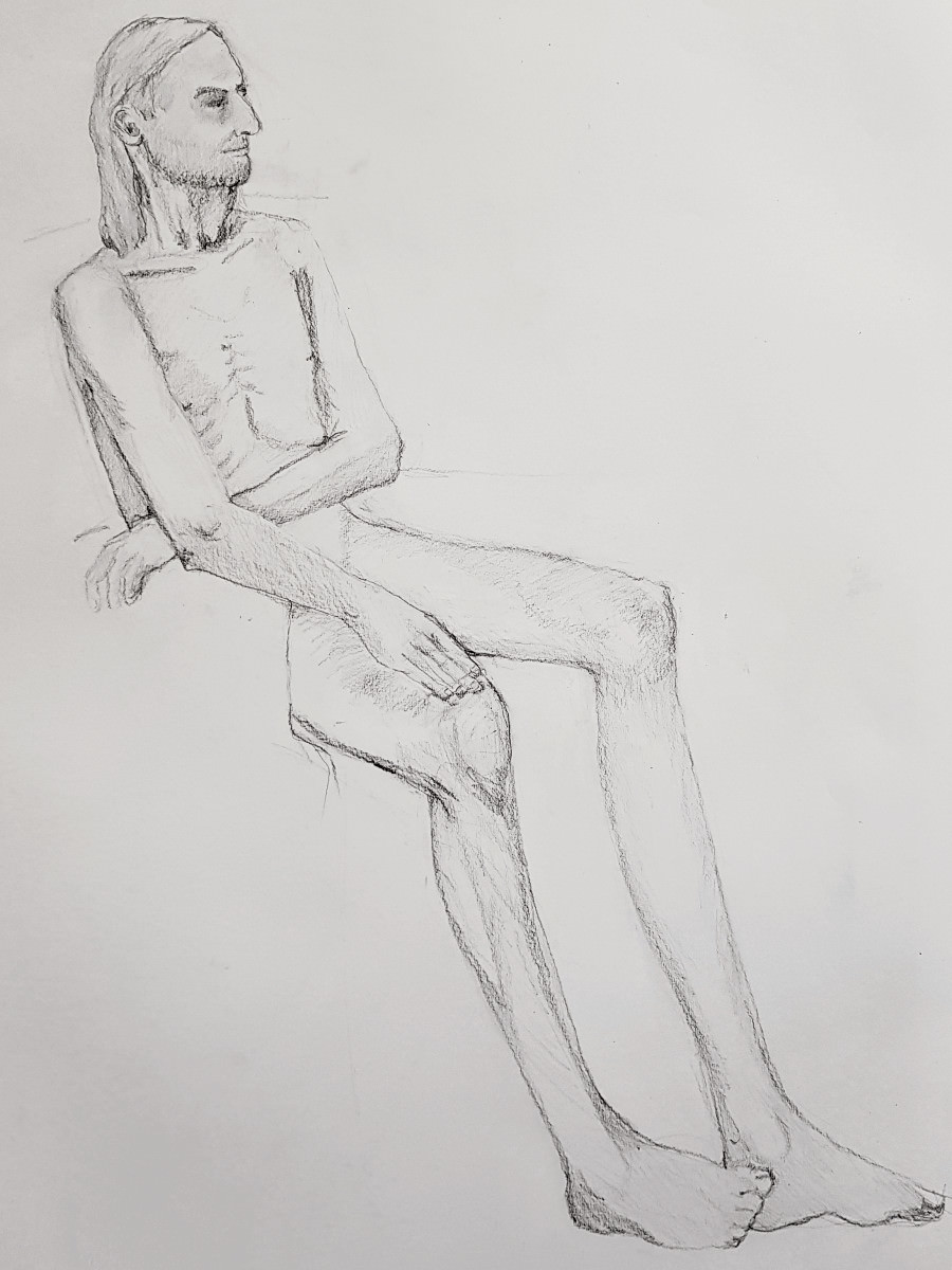 It was the first Monday evening life drawing class of the first term of the new calendar year at The Conservatoire in Blackheath, and it was my privilege to be their model. It was also -5°C outside and not exactly hothouse conditions indoors so with privilege came predicament.