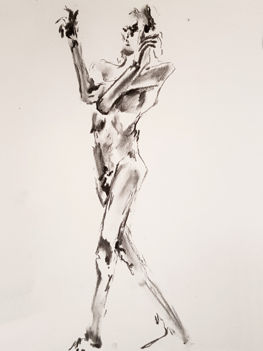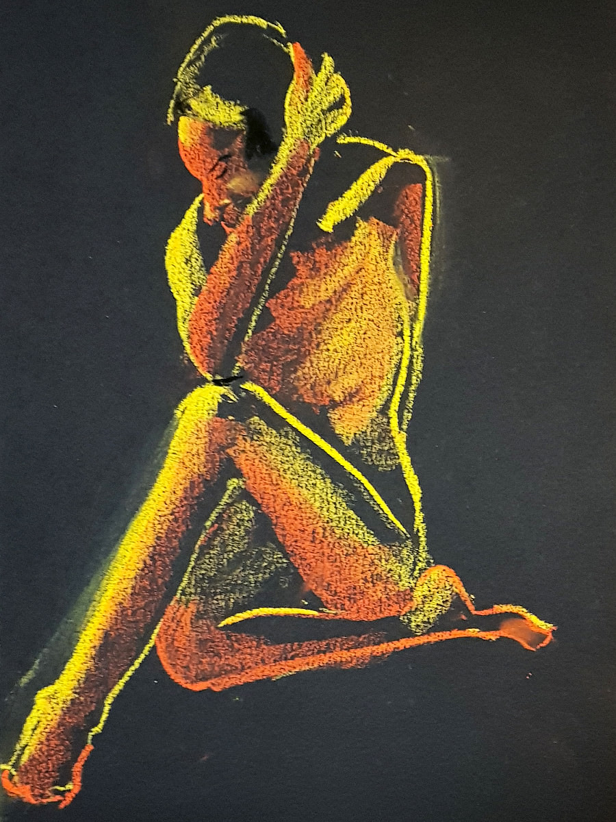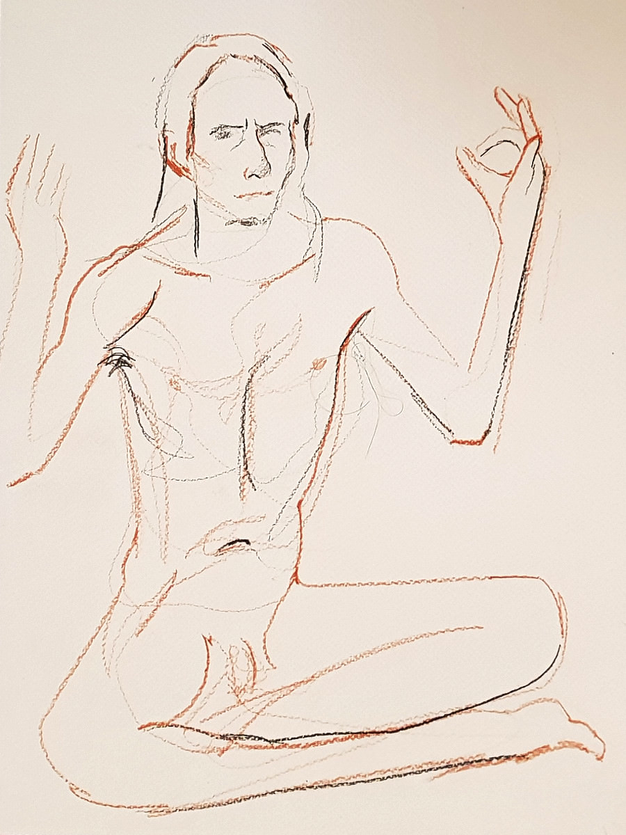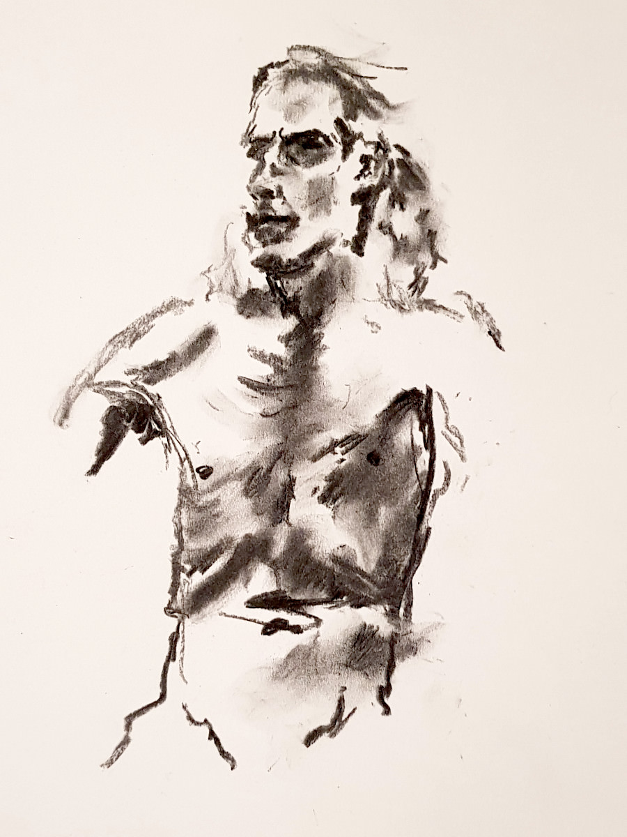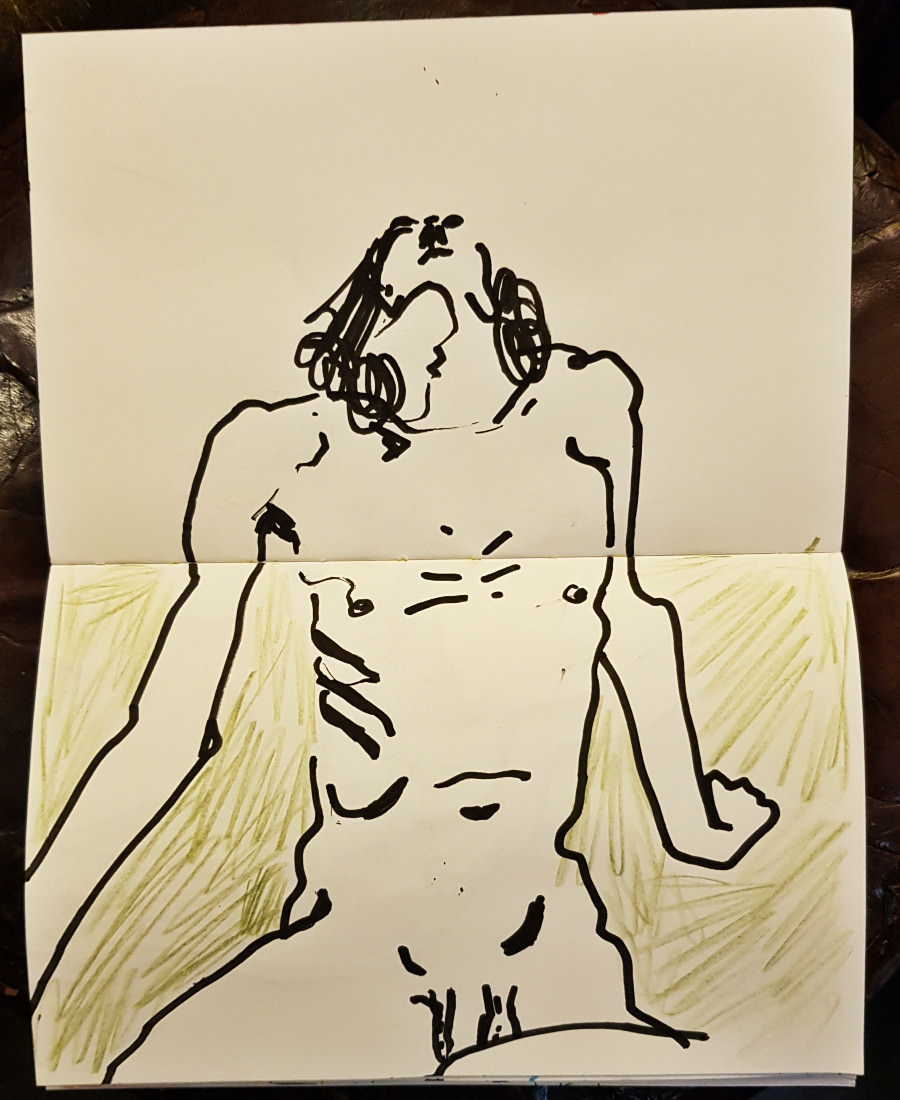 The attendance by artists at regular life drawing sessions can sometimes seem fickle like the weather too. This one for Drawing the Star on a cold damp January evening seemed fated for a very low turn-out, until boosted by a flurry of last-minute arrivals.