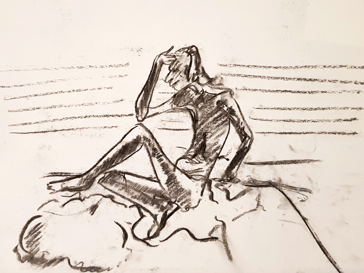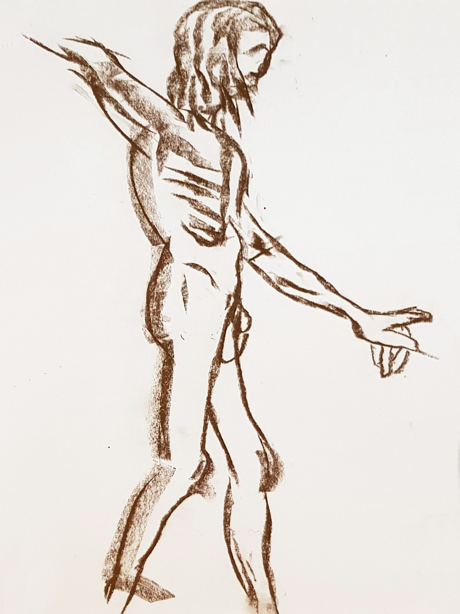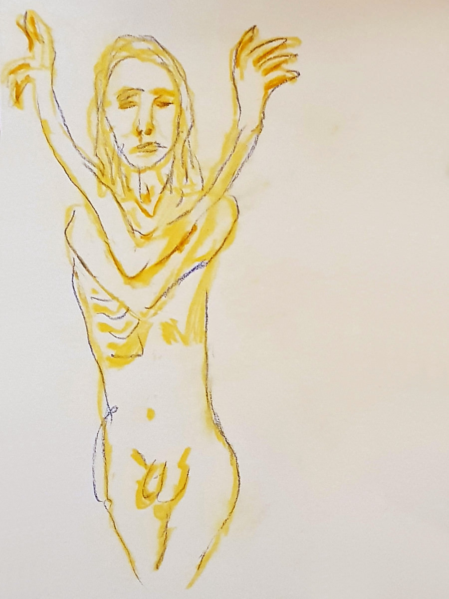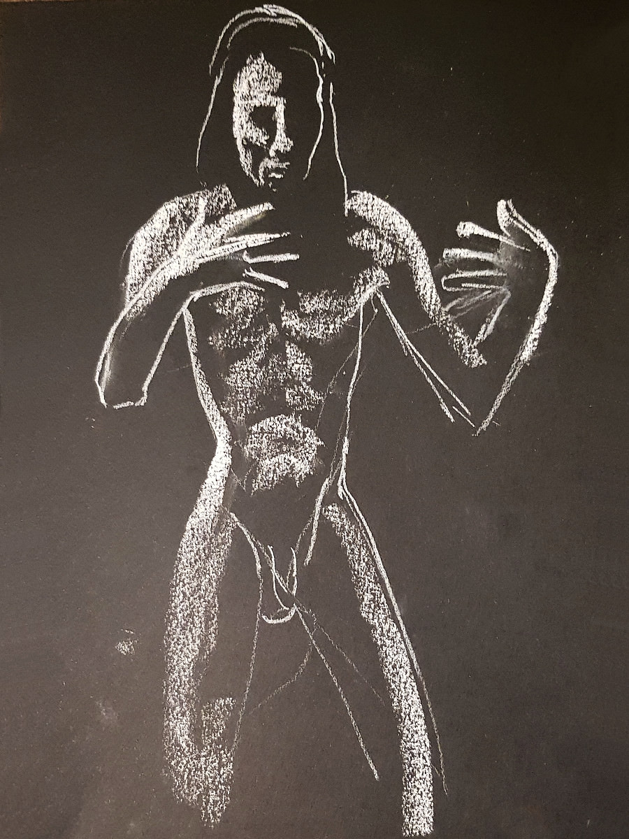 The attendance by artists at regular life drawing sessions can sometimes seem fickle like the weather too. This one for Drawing the Star on a cold damp January evening seemed fated for a very low turn-out, until boosted by a flurry of last-minute arrivals.