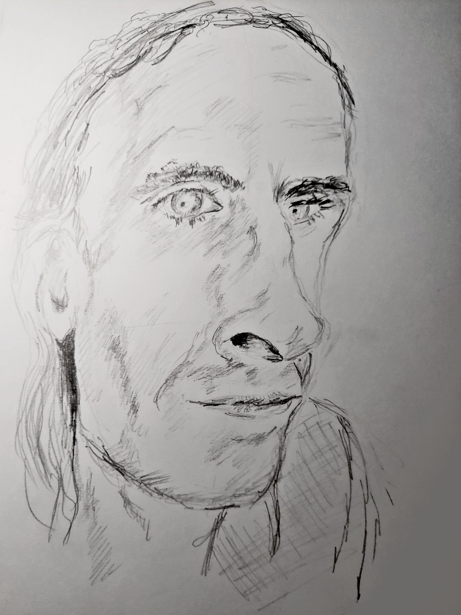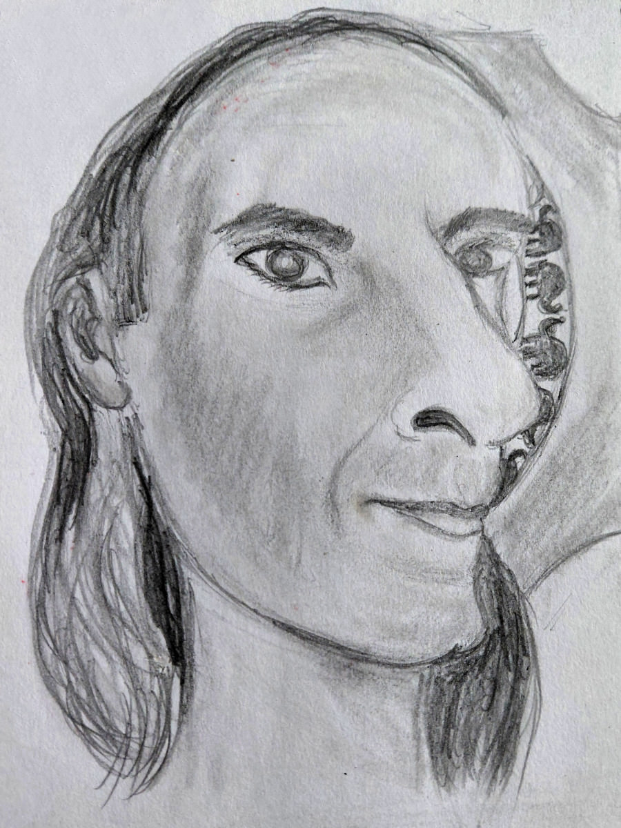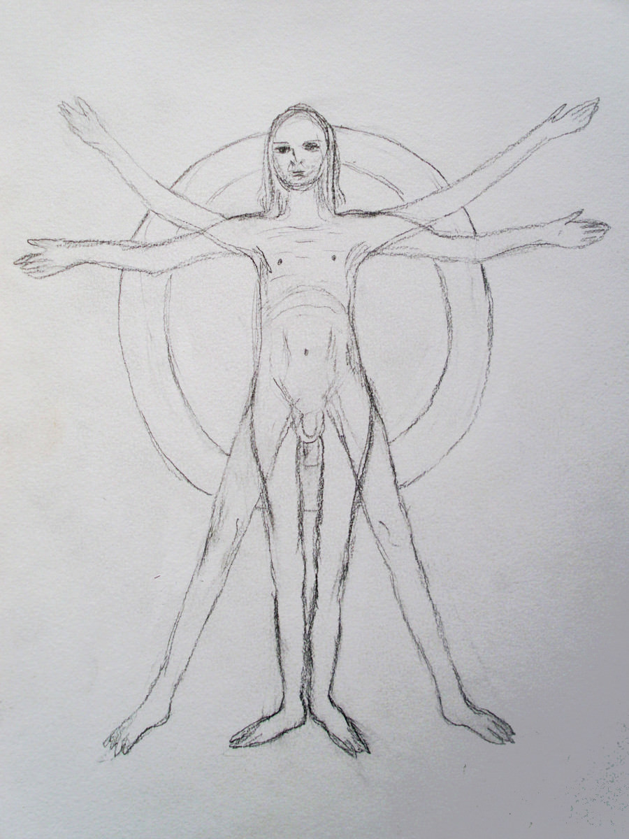 After these two endurance exercises it was comparatively a sumptuous comfort to sit motionless for a 40-minute close-up portrait study. Ohh, the relief. Yet thinking back, I learned nothing about myself or my practice during the portrait pose. As the Vitruvian Man, however, I discovered limitations that, with practice, maybe I can exceed.