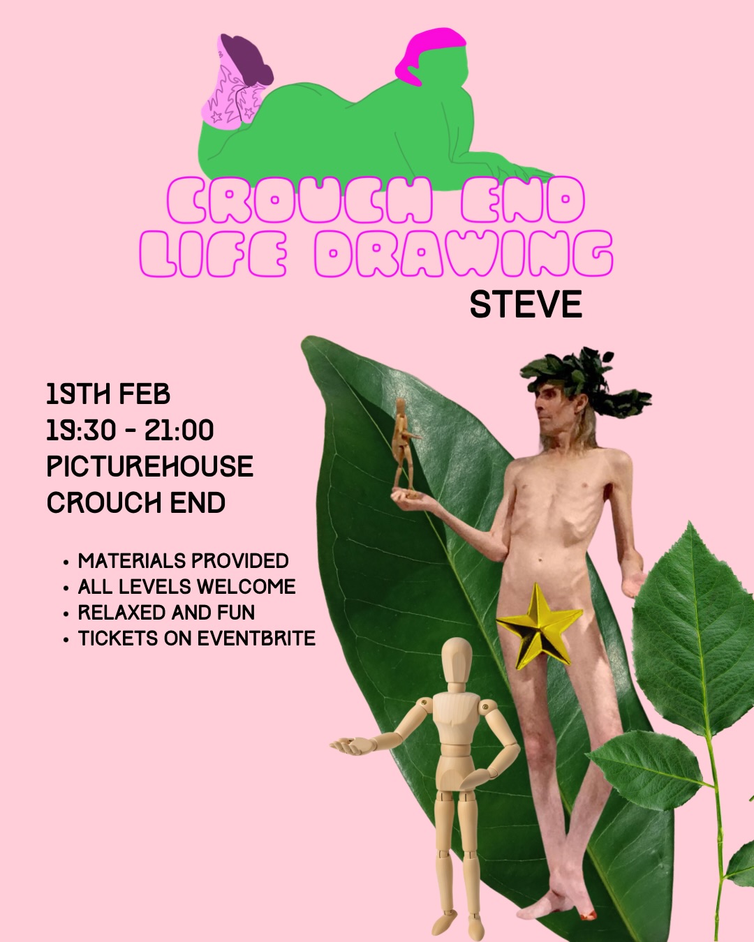 I’ve life modelled in pubs and clubs, bars and cafes, museums and galleries, libraries and community centres, churches and village halls, studios and work places, but only once before had I ever modelled at a cinema. That was way way back in 2013 for Art Macabre at Hackney Picturehouse. Fast forward thirteen years to the present and I find myself at Crouch End Picturehouse, posing with Crouch End Life Drawing.