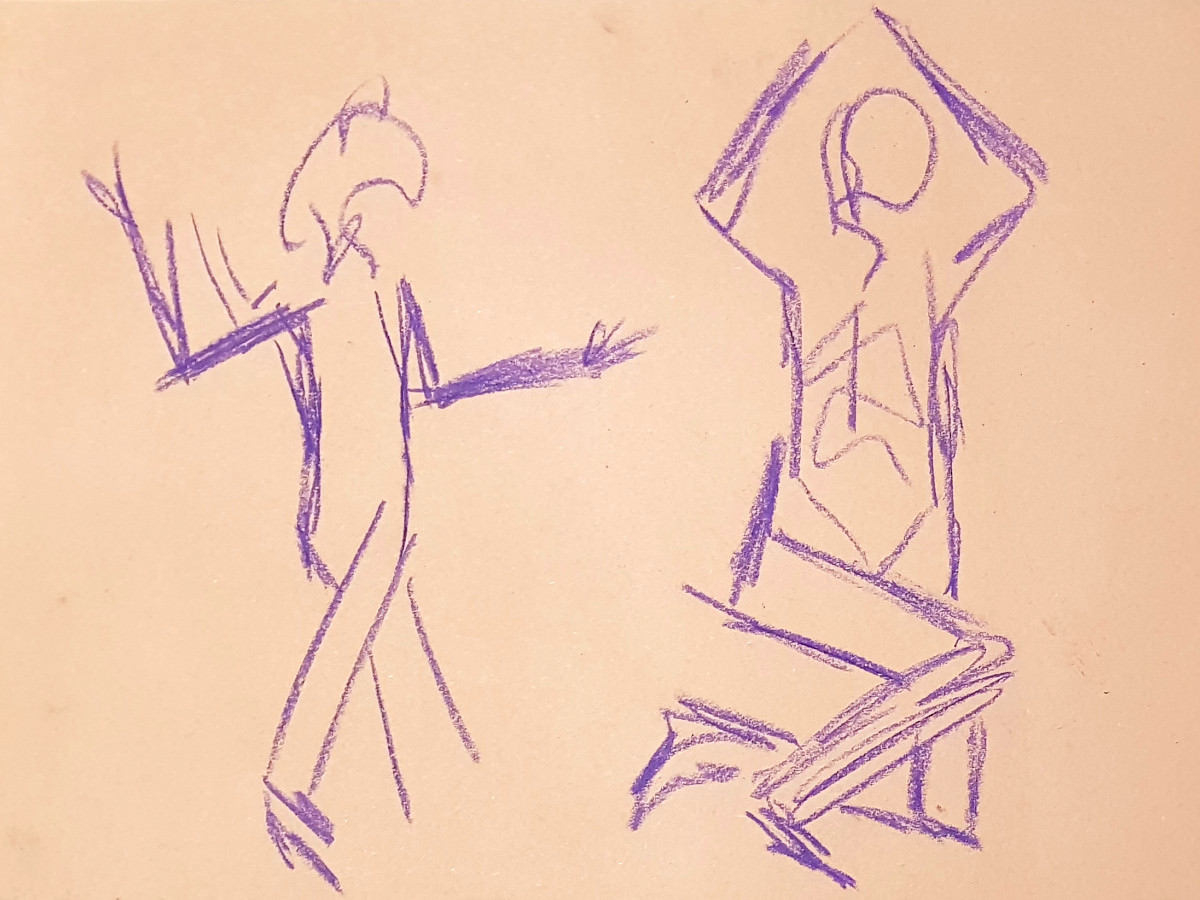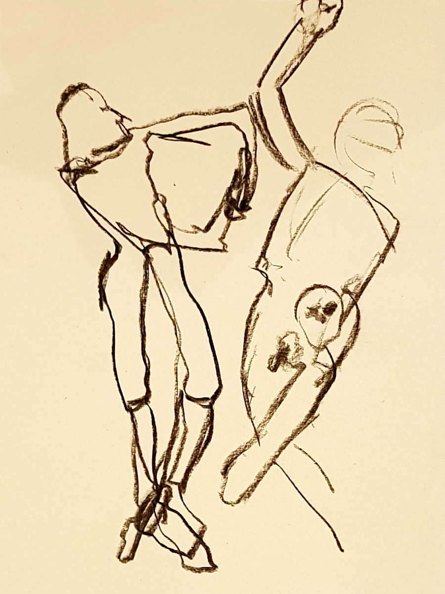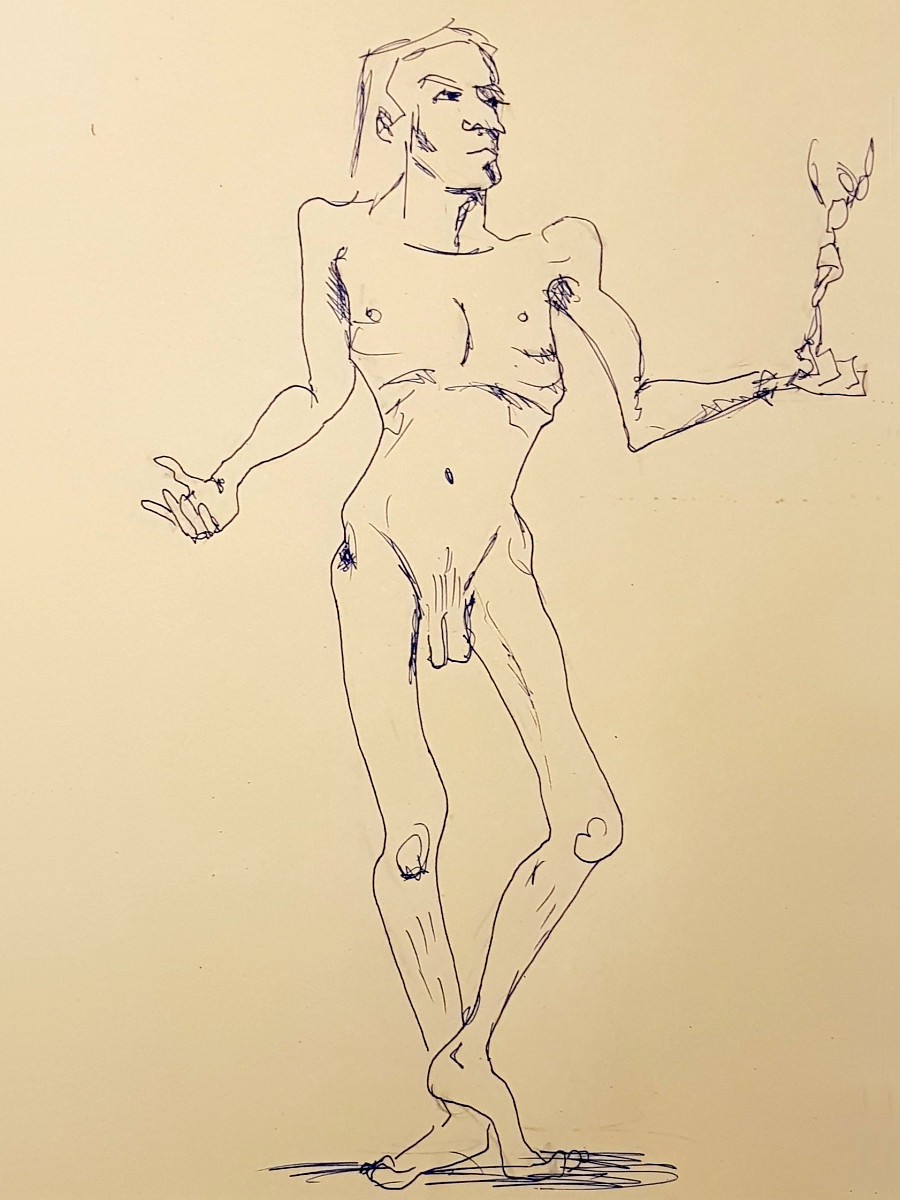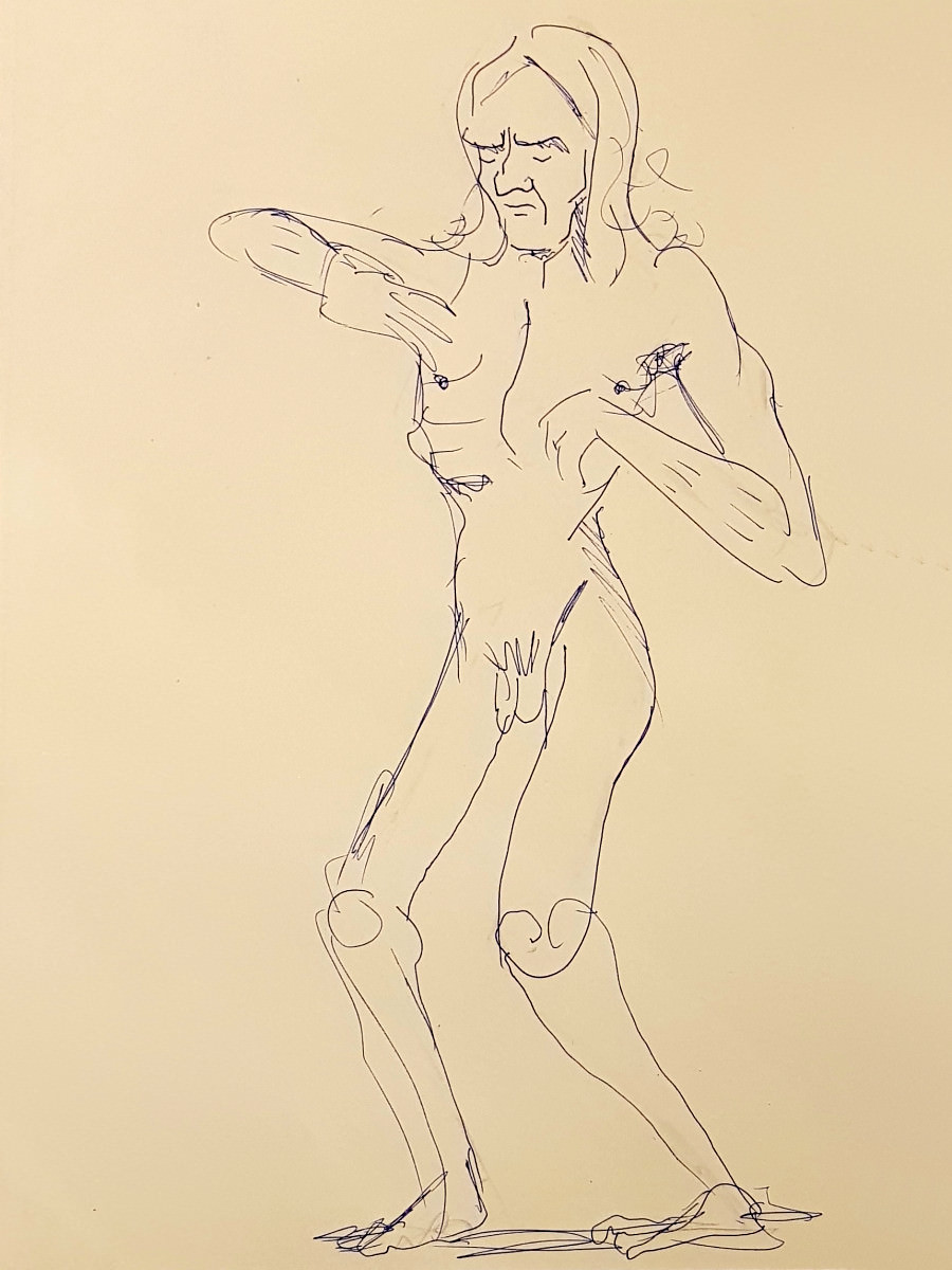 We were in the Picturehouse’s Community Space, not in front of the silver screen but in front of a whole wall of mirrors. It was my first time modelling for this group, and my first meeting with its organiser, fellow life model ‘Fat Meg‘. As requested, I’d sent Meg some photos for promo material, from which one of me holding a wooden mannequin figure – taken during a ‘How to Draw‘ session at The Conservatoire – was used.