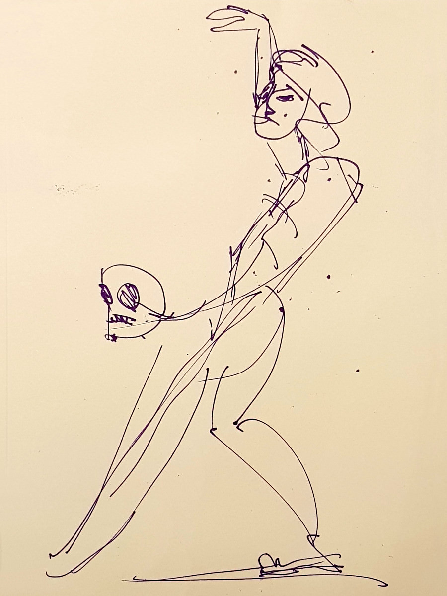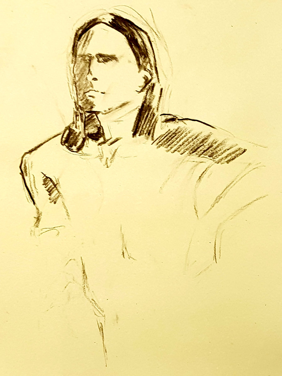 I felt duly it was appropriate that I bring a couple of mannequin figures to Crouch End for use as props. Plus I brought a skull too, because why not? Prop-use is very much encouraged here. I repeated my pose holding one of the figures, but most of the time they just kept me company. Overall it was a relaxed sociable fun session, slightly low key due to foul weather but great to meet Meg at last. Good times.