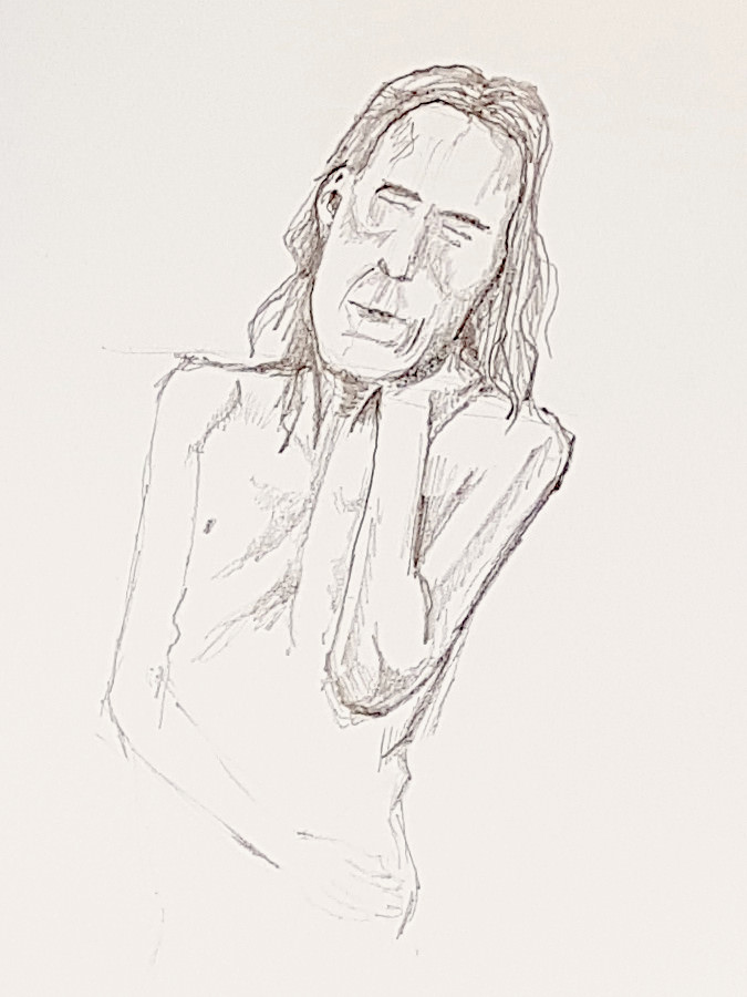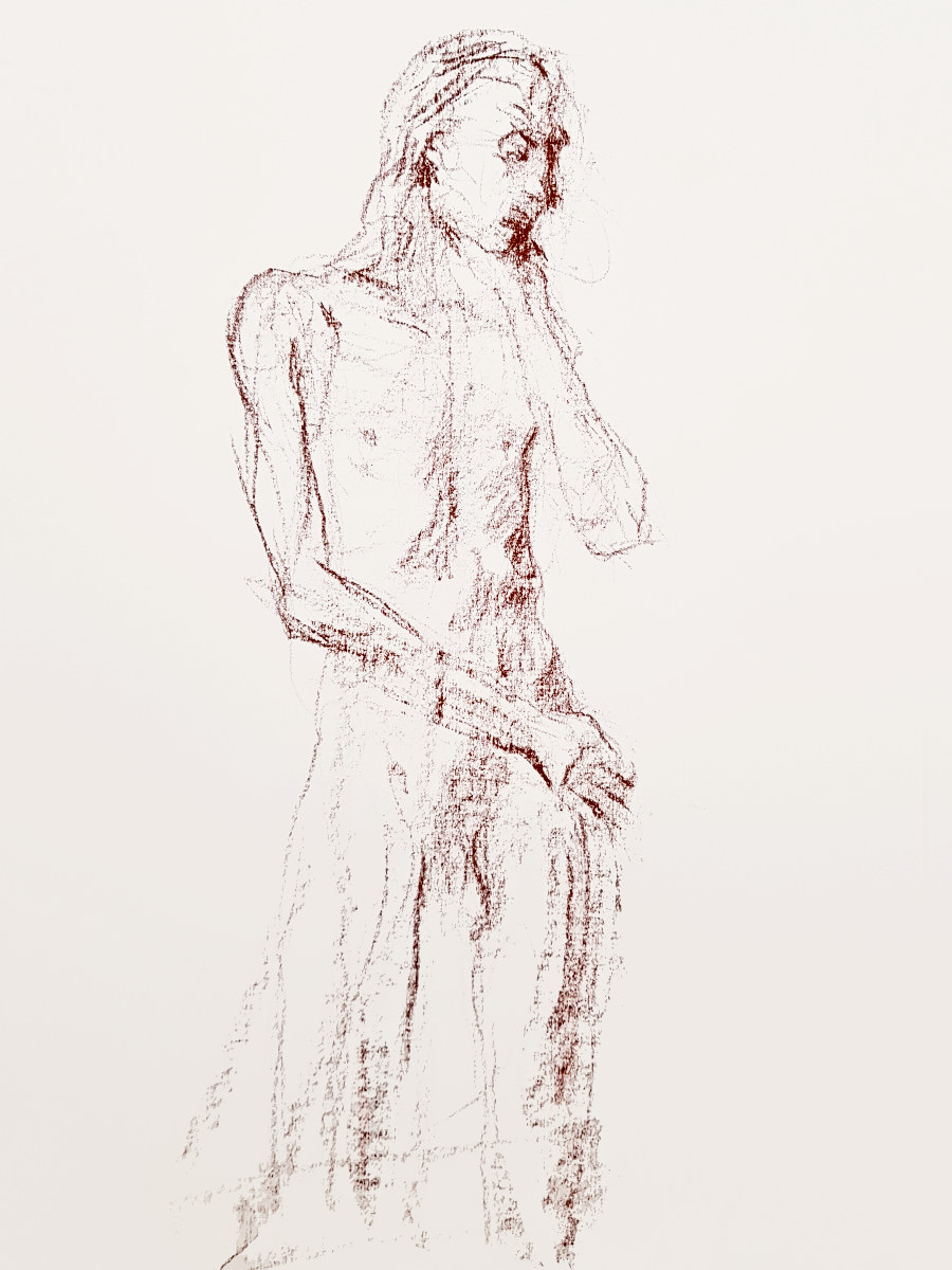 Me? I just get on with my work. Poses of various durations ranging from 2 minutes to 17 minutes are the kinds I favour. Not long enough to get too achy, but sufficient time for talented artists to do magical things. This was a pleasant, gentle session.