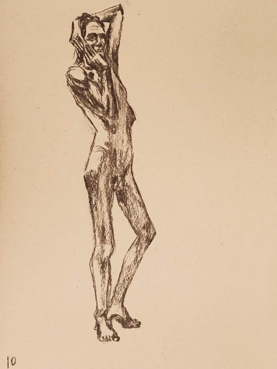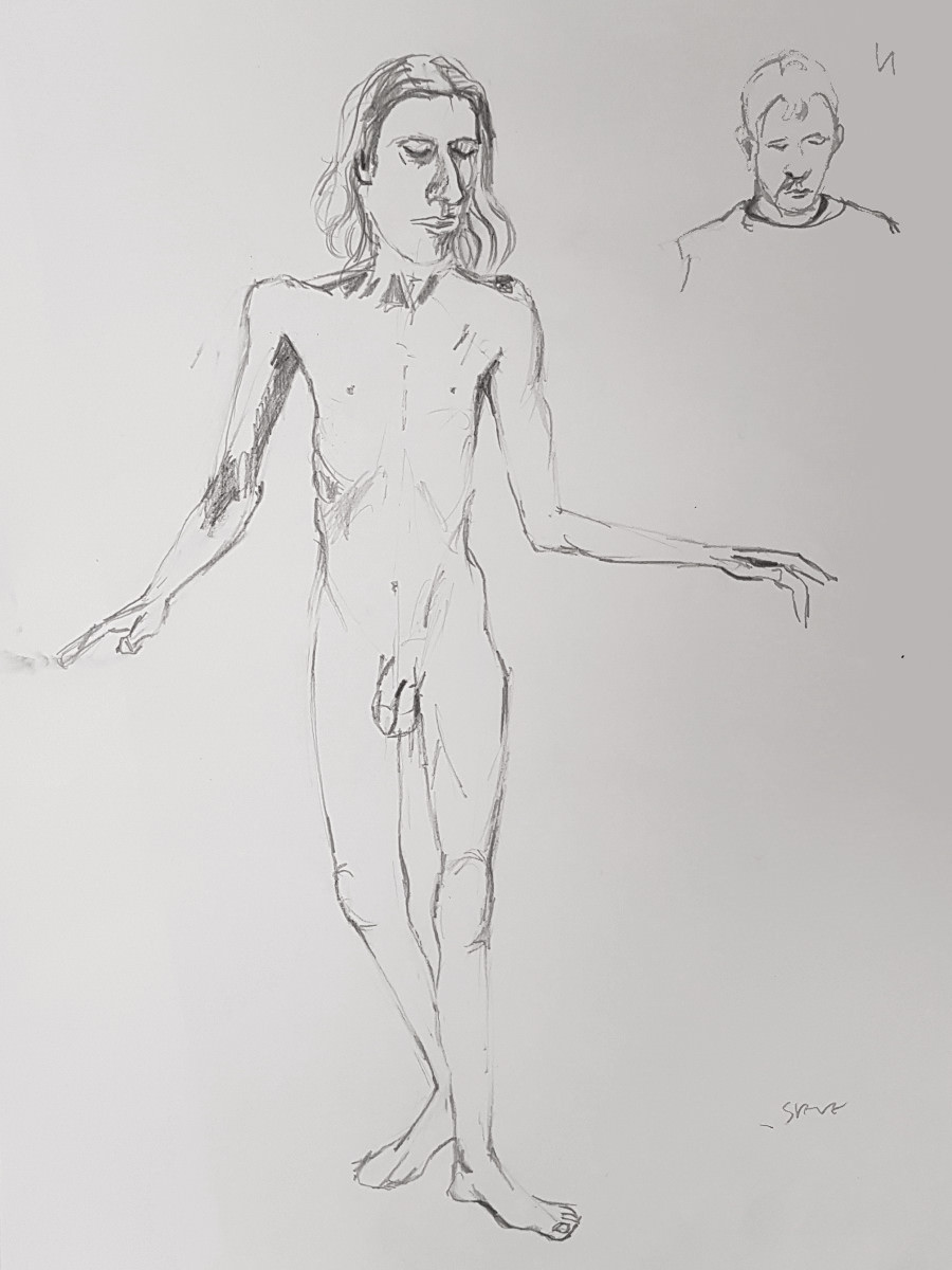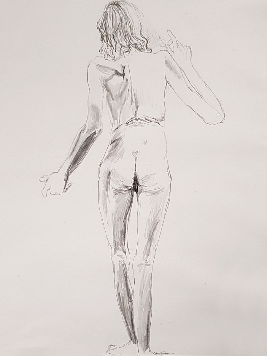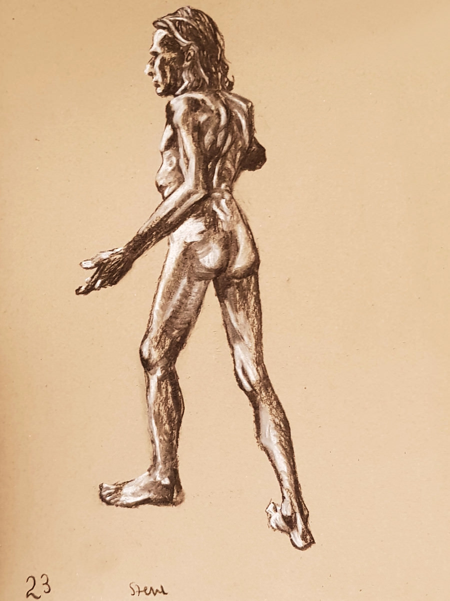 A short-notice booking brought me back to The Plough and Harrow in Leytonstone for the first time since 2017. Not that Life Drawing in Leytonstone neglected me for more than 5 years; venues change, and now this one had switched back. We started with three 3-minute nude poses, and then 5 minutes with my clothes back on.