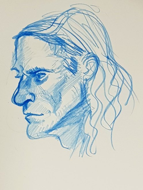 This was a nice one – the last session of spring term attended by the most artists I’ve ever seen for a life drawing class in Brockley Adult Education Centre. Our tutor, Jo showed images of drawings and a promotional video by local star Curtis Holder as inspiration for practising the use of loose colourful fine lines. And it worked.
