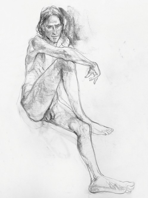 Whereas The Star’s pose lengths start at 5 minutes then dwindle all the way down to three of 30 seconds before increasing again, here they go up and up from the outset. This wasn’t the only difference; the best news is that Catherine is once more offering feedback, tips and informal tuition to the artists. My next pose: 20 minutes seated.