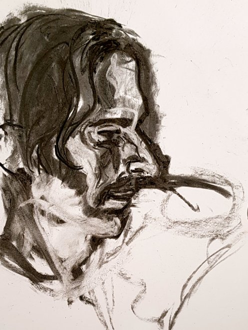 To finish, I stood for 20-minutes, sat on the floor for 15-minutes, and finally reclined for 15-minutes. I thoroughly enjoyed every detail; not least the intriguing Spotify playlist, which had been carefully crafted for the occasion, as always, by Figuration’s Roy. The Groucho Club proved a great venue of life drawing. I was impressed. Long may it last.