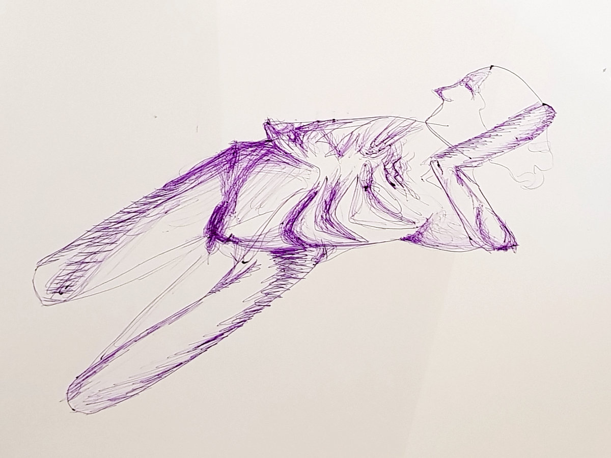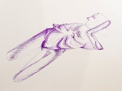 I’d been booked by my friend and fellow model, Natansky, but for this first half it was her sister, Estelle – the group’s co-organiser – who was running the show and calling the pose times. I followed with 15-minutes standing in what the artists christened my “Jesus pose”, and then ended the half with another 10-minutes sitting on the floor.
