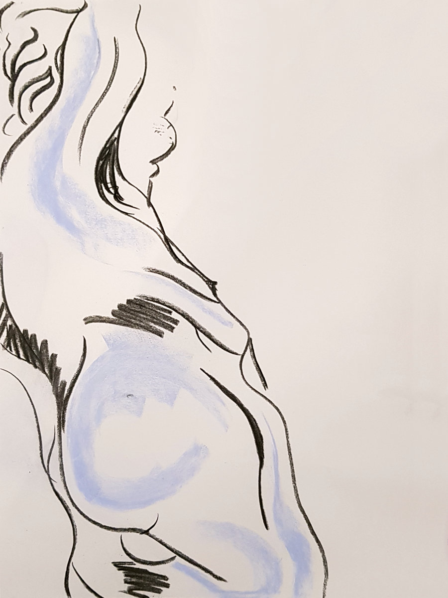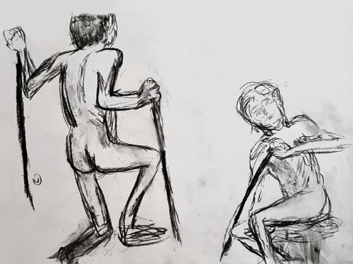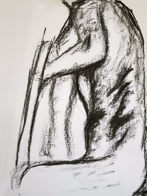 After three weeks’ absence from the life drawing scene, including two weeks’ absence from Europe, I resumed nude shape-making with a second visit to Mycenae House in Blackheath. I’d first posed here for Life-drawing at Mycenae House back in March.