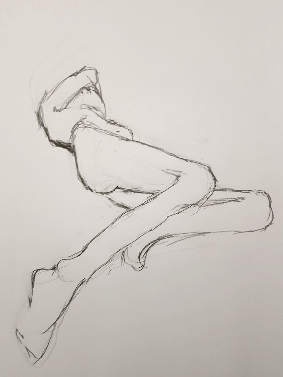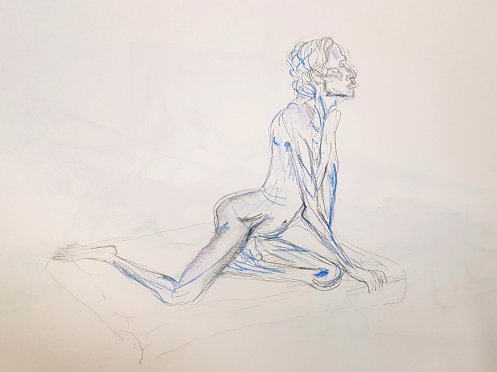 For the first 40 to 45 minutes I was comfortable, but then inevitably there comes a bit of an ache where the hip and shoulder bones press to the floor. Not a problem though. This was a nice, gentle return to the world of life modelling.