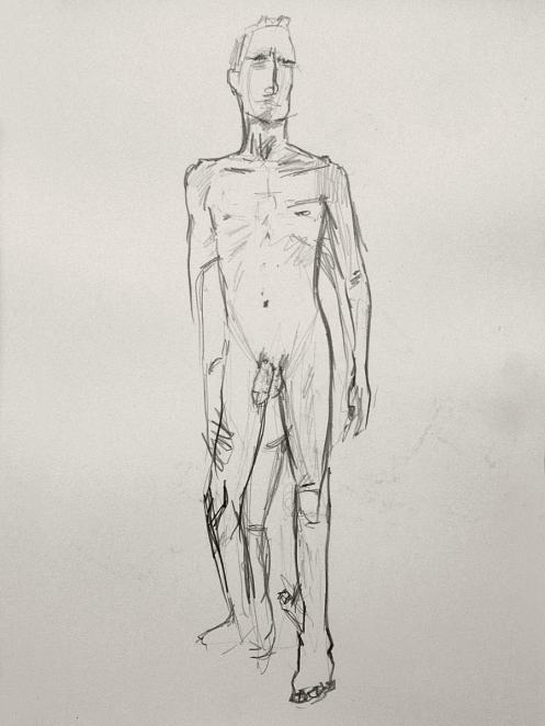 After two hours of Sunday morning life modelling at Wanstead House, I took the tube to Aldgate East and passed another two hours with coffee at Costa before starting my next session at The Dellow Centre. I was still a little bit achy from the previous work but had saved enough energy not to feel overly exerted. I arrived early, undressed, and opened with a 5-minute standing pose at 2:30pm sharp.