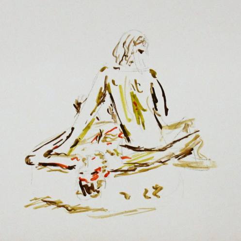 Without further ado, I stripped off and plunged myself into the round of 22 artists – the most I’ve ever seen there – for an opening 5-minute pose. I still hadn’t got my breath back, and felt physically out of sorts, but the show must go on: 4-minutes, 3, 2, 1, 15 and 20-minutes up to a break. It was a relief to get through that first half intact. At the interval I robed and recomposed myself. I’d been shivery, had a touch of cramp and an unsettled stomach, but the postures held firm.