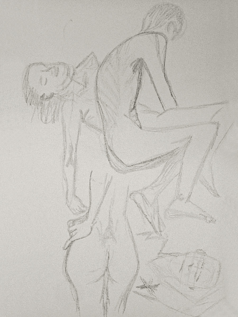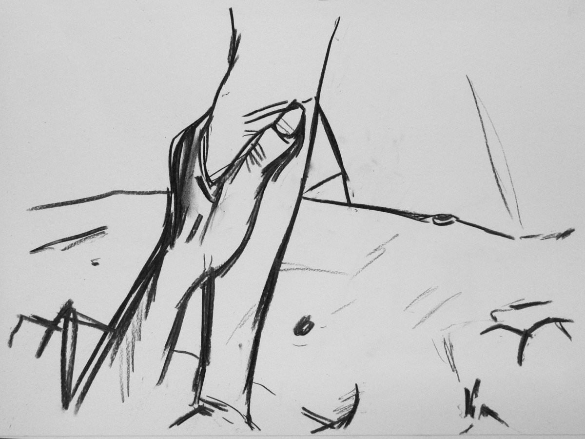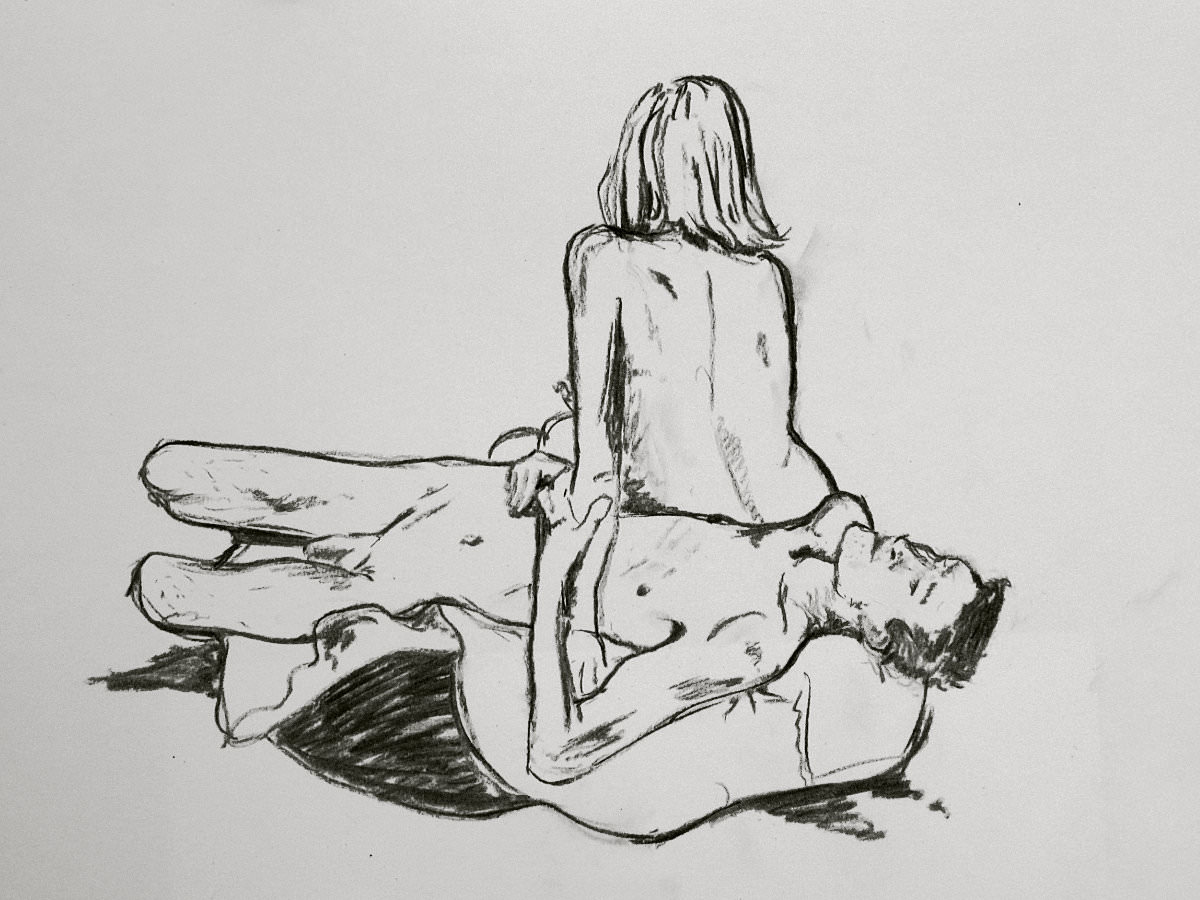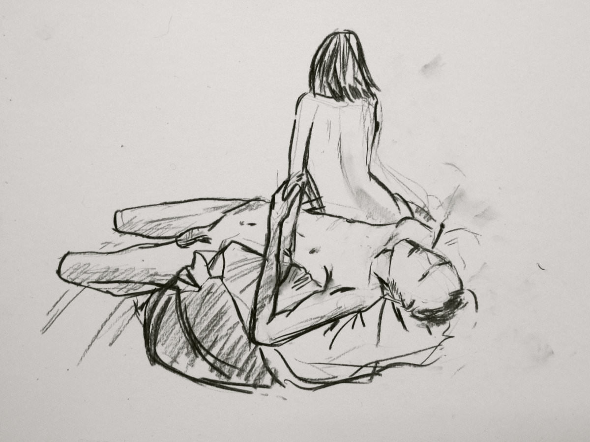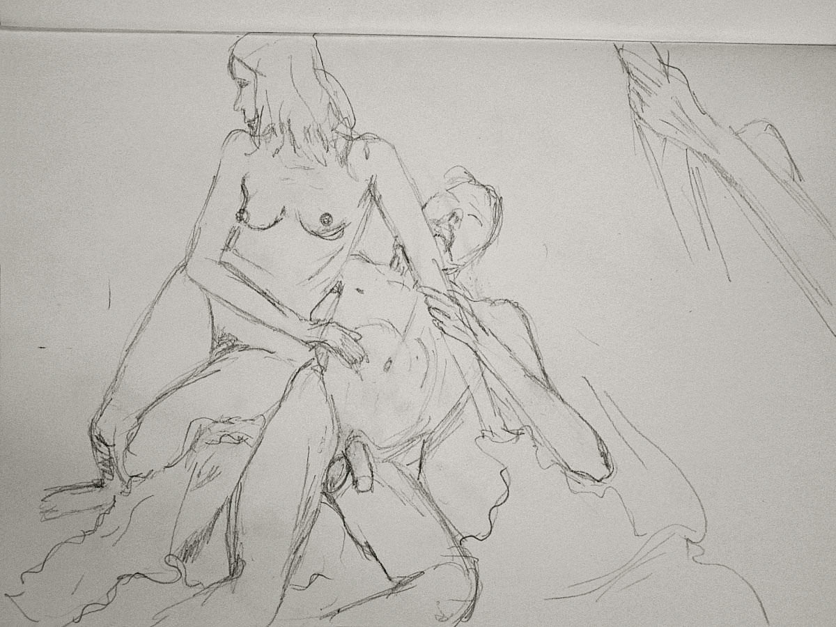 Esther and I were modelling together again last week for the Telegraph Hill Festival. In 2016 we’d attended as part of a Spirited Bodies collaboration, but this time it was just the two of us posing in a Telegraph Hill life drawing group taster session. We were welcomed by our friend Frances, who runs the group, and were soon joined by a dozen artists; a healthy mix of old friends and first-timers. We started: 5-minutes both standing; 5 sitting back-to-back, 10 with Esther standing, 10 standing back-to-back.