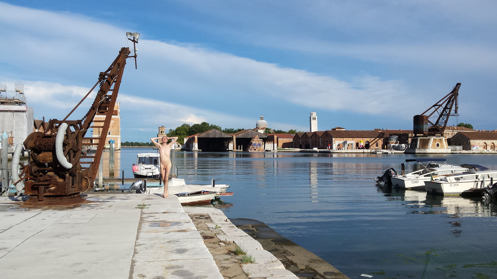 Summer saw our third and final Venice visit, returning for another Girl in Suitcase performance. As ever, we took many vaporetto trips around the lagoon and, on our last evening, I finally grabbed an opportunity to pose nude in front of the iconic Doge’s Palace and Campanile.
