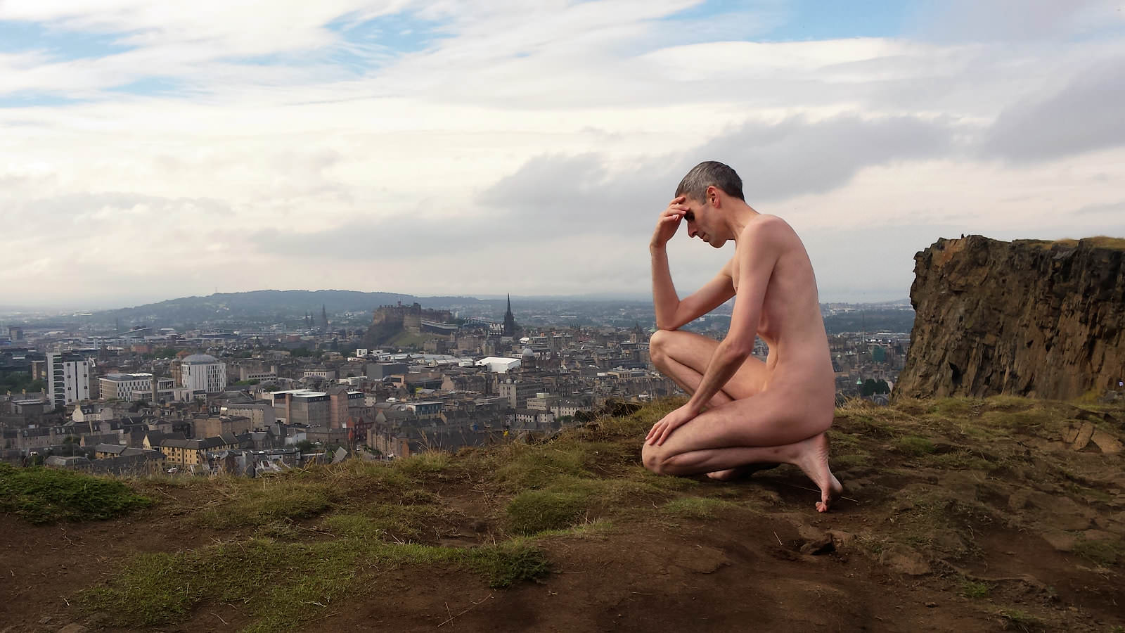 Now somewhere different. An invitation for Esther to take Spirited Bodies life modelling to the Edinburgh Festival Fringe saw us visiting Scotland over a long weekend. We hiked to Arthur’s Seat where I risked Scotland’s strict anti-nudity laws to chance a pose on the crag.