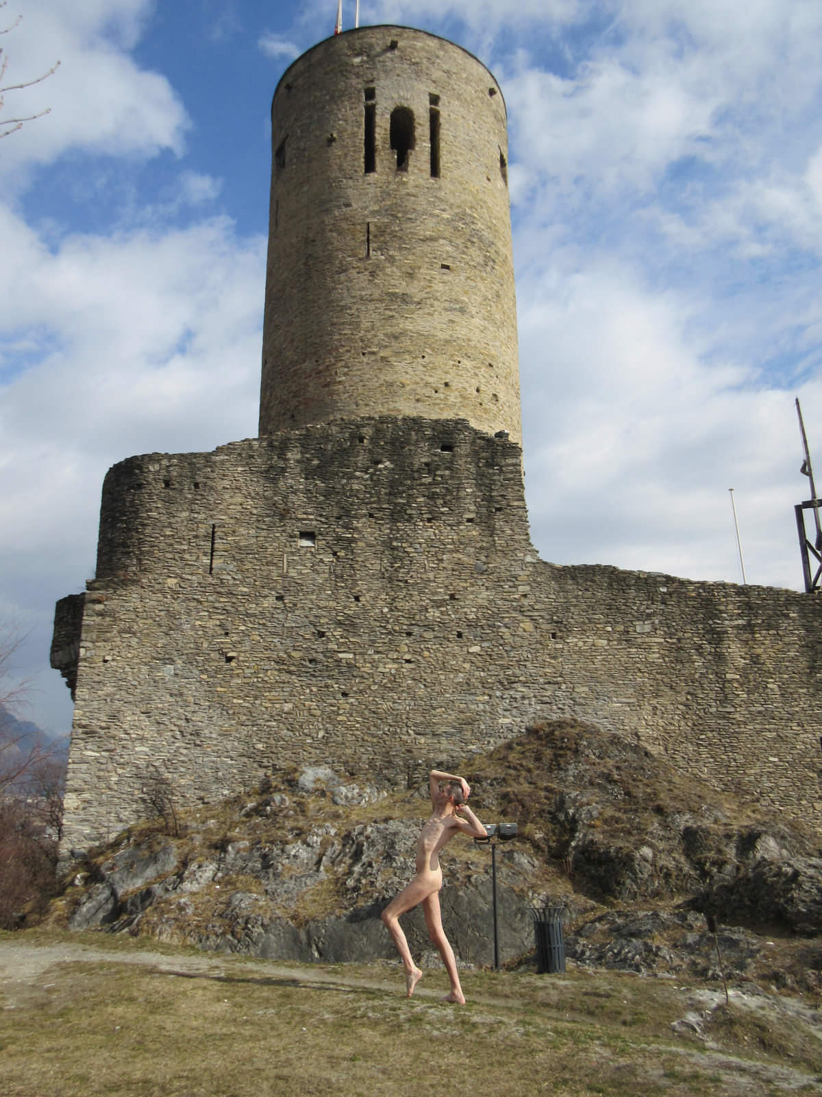 Esther and I visited Switzerland to participate in ‘Footfall‘ – a performance art installation by JocJonJosch. Whilst in Martigny, I posed flamboyantly at La Bâtiaz castle, and anxiously in a residential area next to one of the ‘Raised Totems‘ built by JocJonJosch in 2016.